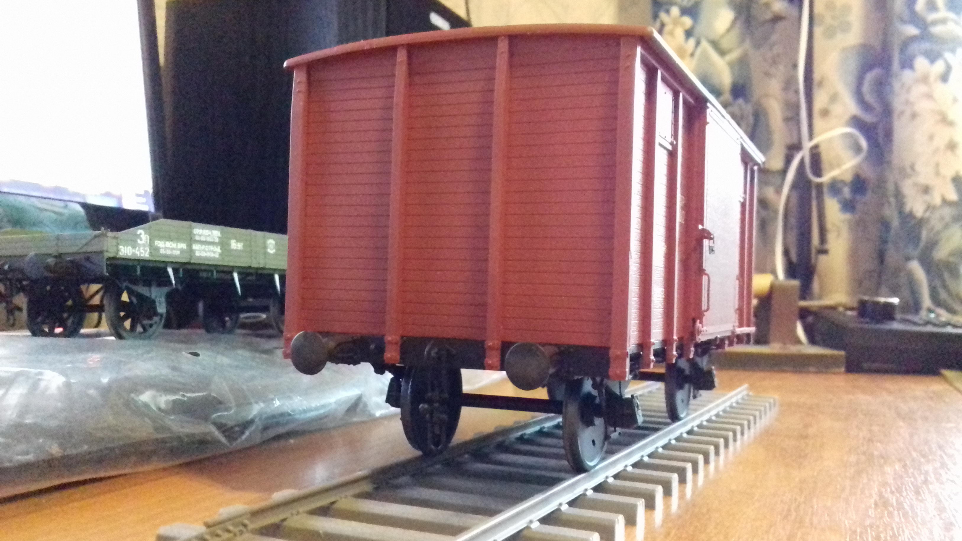Удалось мне прошлой осенью заказать в эстонском магазине кит крытого вагона НТВ производства SDV Models (Иржи Индры). К сожалению, процесс сборки не заснял, так как не планировал выкладывать фото. Вагон соответствует первой эпохе, производитель снабдил набор декалями вагона полевой почты чешской армии времен WW1. Декали применил производства "Теплушка" эпохи РИ. Колпары вместо родных пластиковых поставил от RB Model. Красить не стал, цвет пластики достаточно качественно подобран производителем под стандартную красно-коричневую суриковую окраску вагонов.