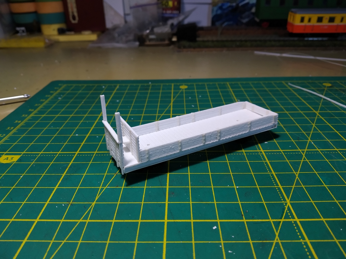Сформировался облик очередного пассажирского вагончика. Внешне выглядит самым укомплектованным потому, что с поручнями, но в реальности пока без рамы и тележек.