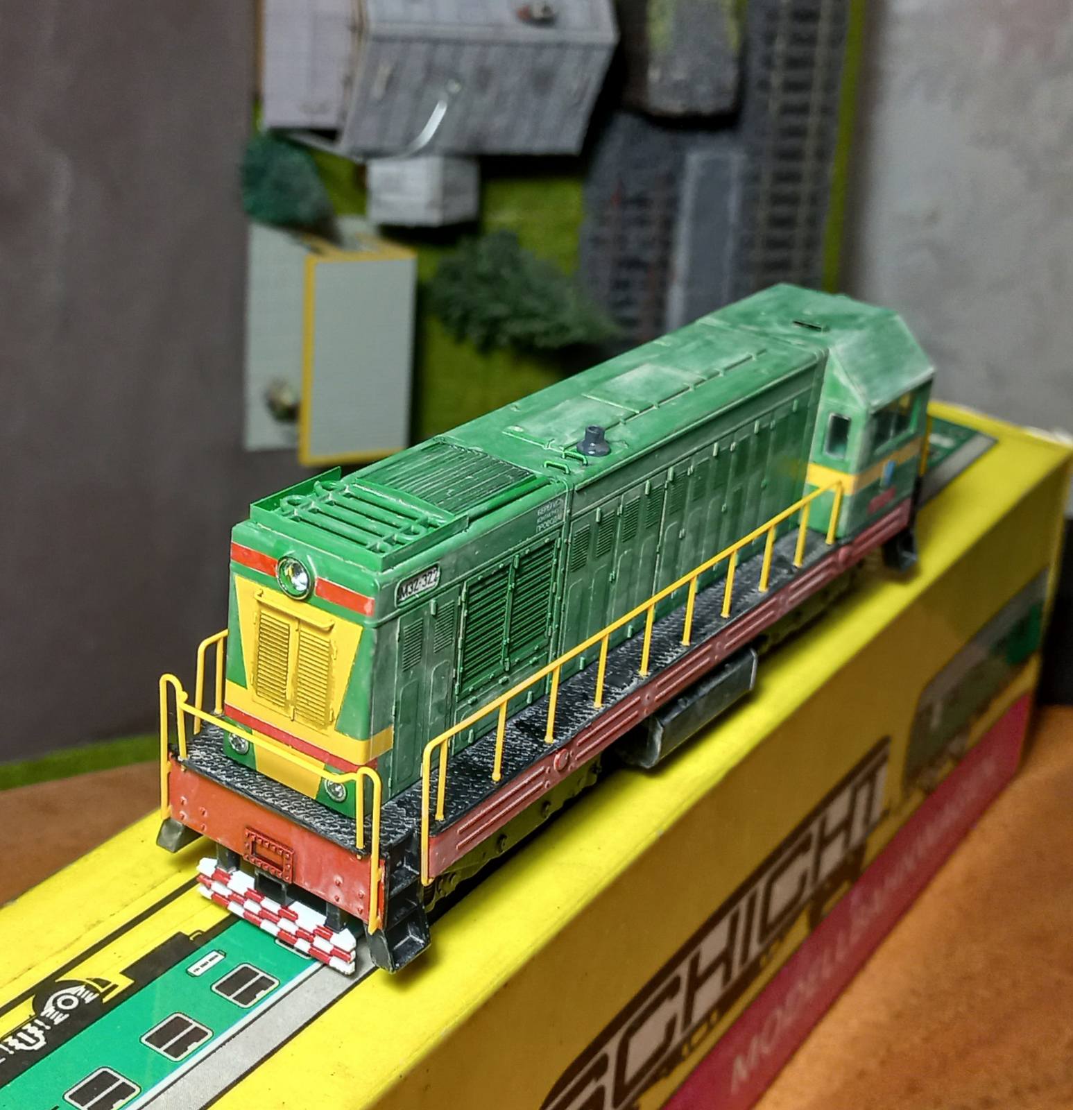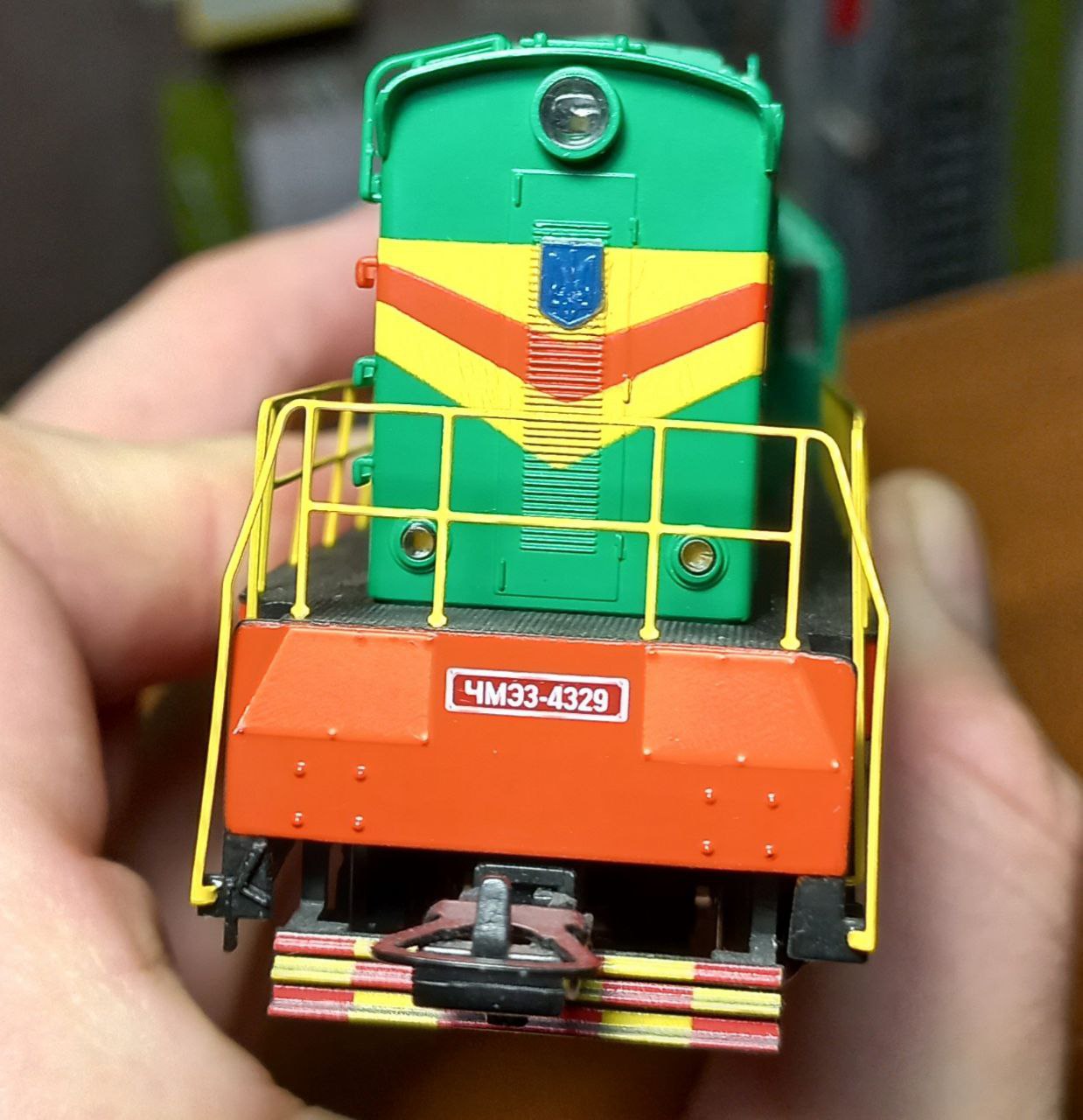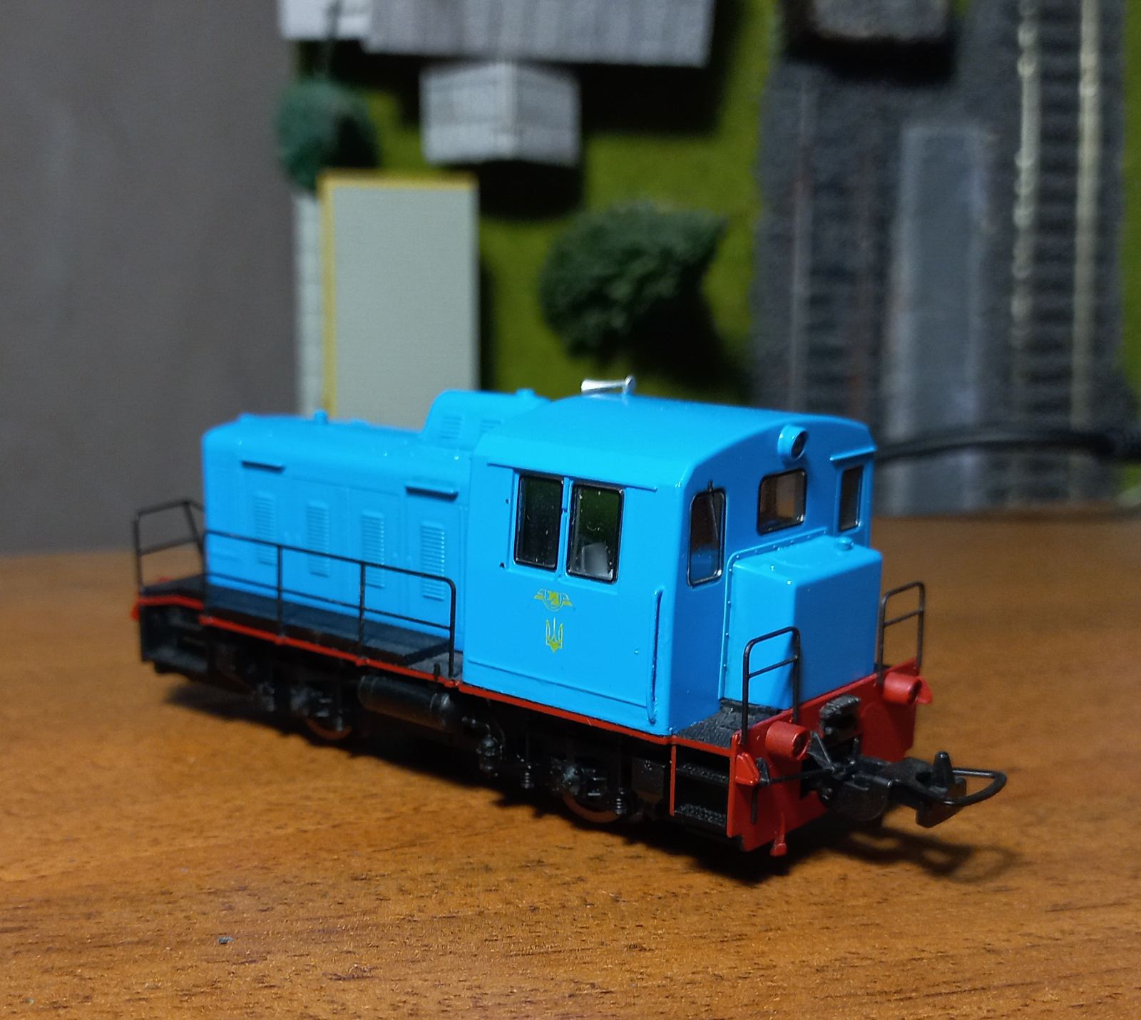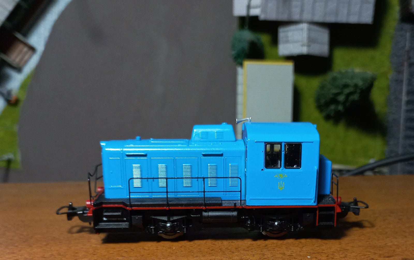 Хотілося лишити ЧМЕ2 у колекції, але не хотілося лишать радянським. Бо за той короткий проміжок з останнього посту про діжку, вагонів з гербами СРСР у мене вже не стало. Їдуть на фронт у вигляді керамічних бронеплит для бійця. :roll: Вандалити сильно лок не хотілося, бо він гарний, і як не фарбуй все одно буде по мотивам. Отже зробив з декалей та полістиролу герби, які повісив на крапельку ПВА.