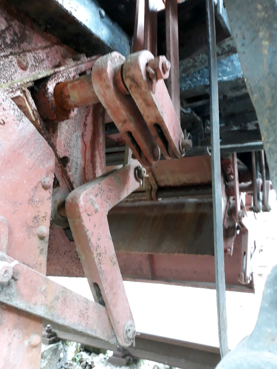 Элементы бункера и разгрузочных устройств. Отверстие в бункере, сквозь которое сделаны два фото, находится со по центру, на уровне примерно полтора метра от пола переходной (тормозной) площадки, имеет диаметр около 25мм.