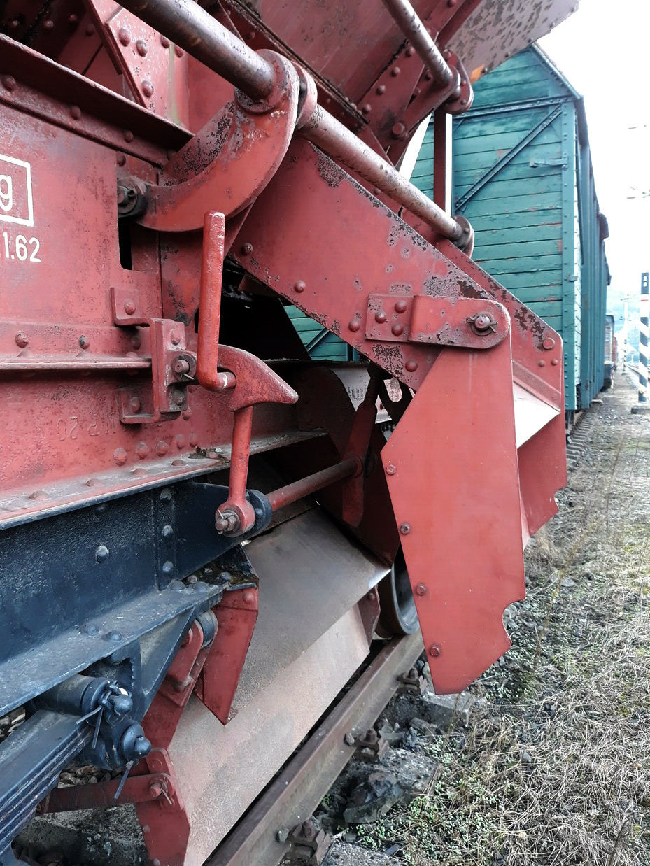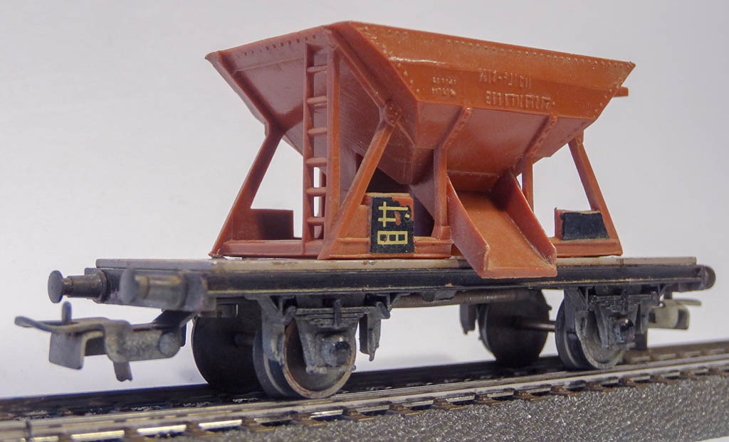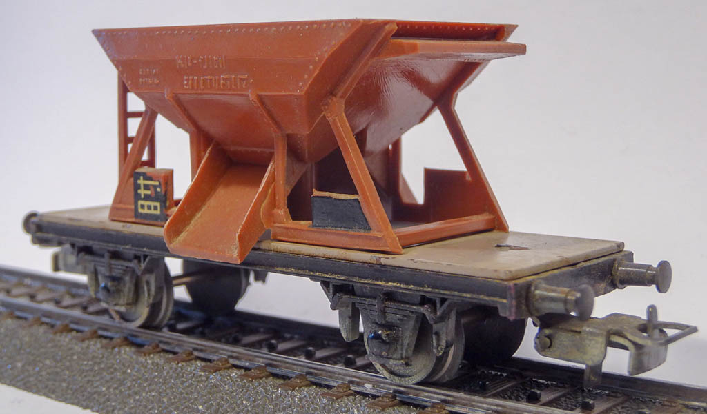 Похоже, эта модель у Марклина сделана "по мотивам". Не только будка, еще и полноценная платформа под бункером, и бункер у'же рамы. Но есть ложка меда в бочке дегтя - только у Марклина сделаны разгрузочные окна бункера. И по фото создается впечатление, что их клапаны функциональны - с одним только отличием, что у модели, похоже, открытие на разгрузку при отклонении рычага наружу, а у прототипа - внутрь.