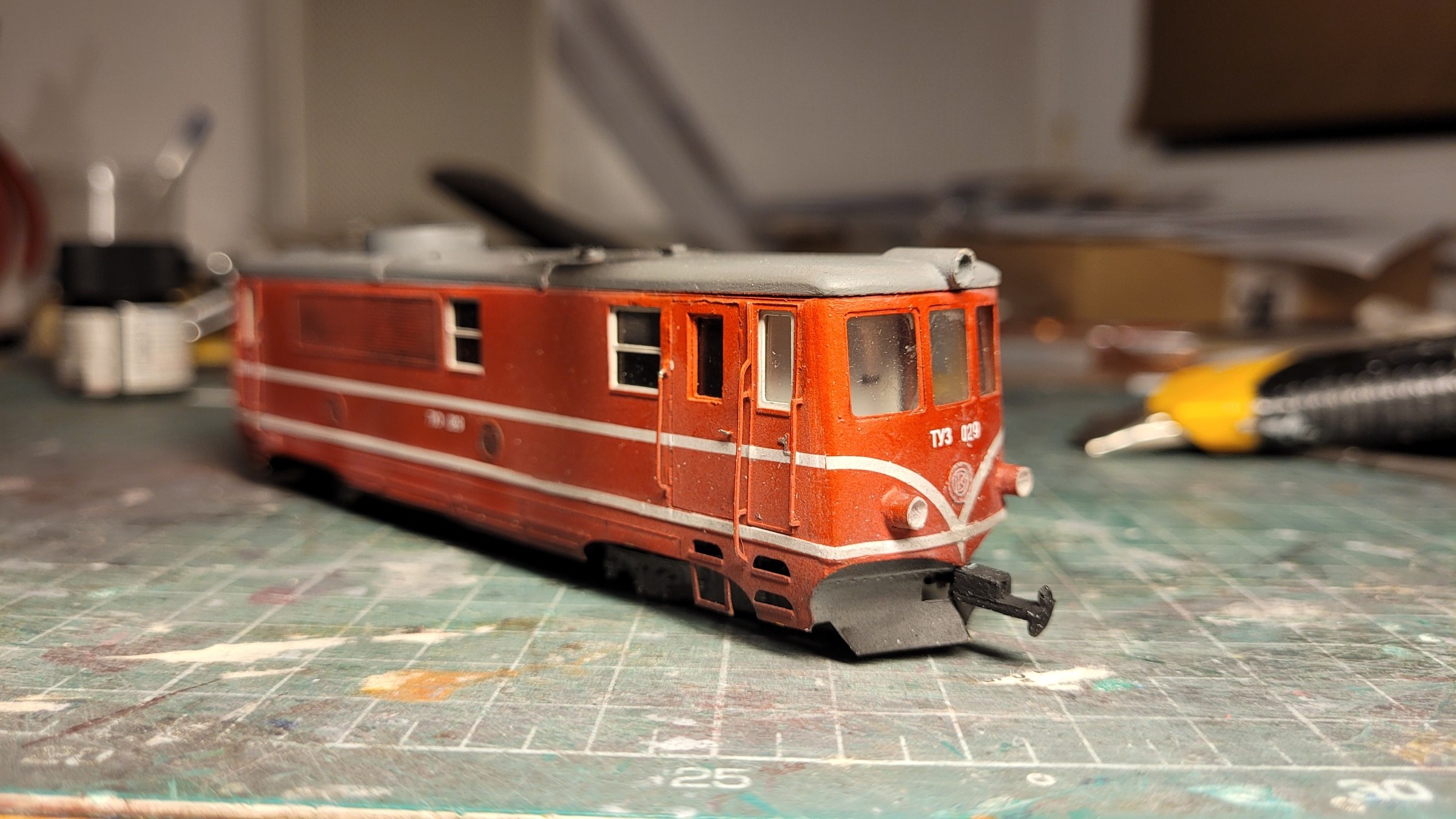 Ходовка взята от узкоколейного локомотива ÖBB 2095 производства Liliput. Она не идеальна - не совсем совпадают межосевые расстояния, двигатели достаточно шумные, локомотив слегка раскачивается при движении (впрочем, настоящий ТУ2 на большой скорости тоже шатает будь здоров).