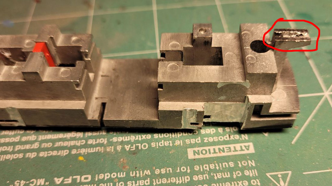 После сборки необходимо немного сточить верхнюю заднюю часть, как показано на фото: