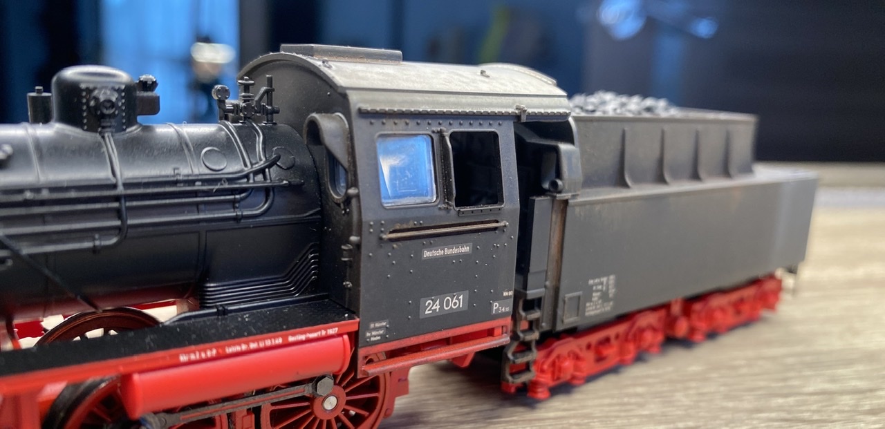 4. Нижня частина корпусу оброблена коричневим сухим пігментом задля імітації пилу з рейок