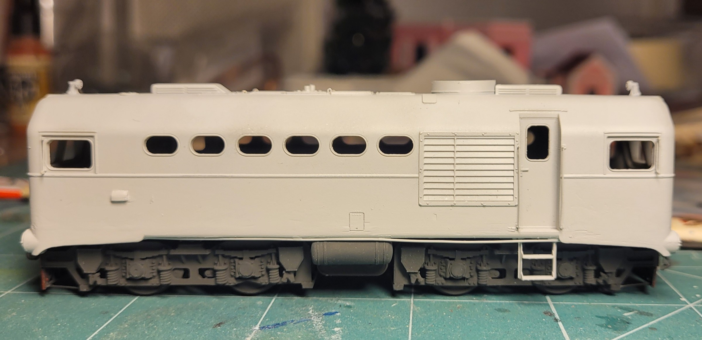 На раме нужно проточить выемки под двери, канавки под защёлки, сточить стойки для прожекторов, около 1 мм высоты топливного бака и защёлки на топливном баке.