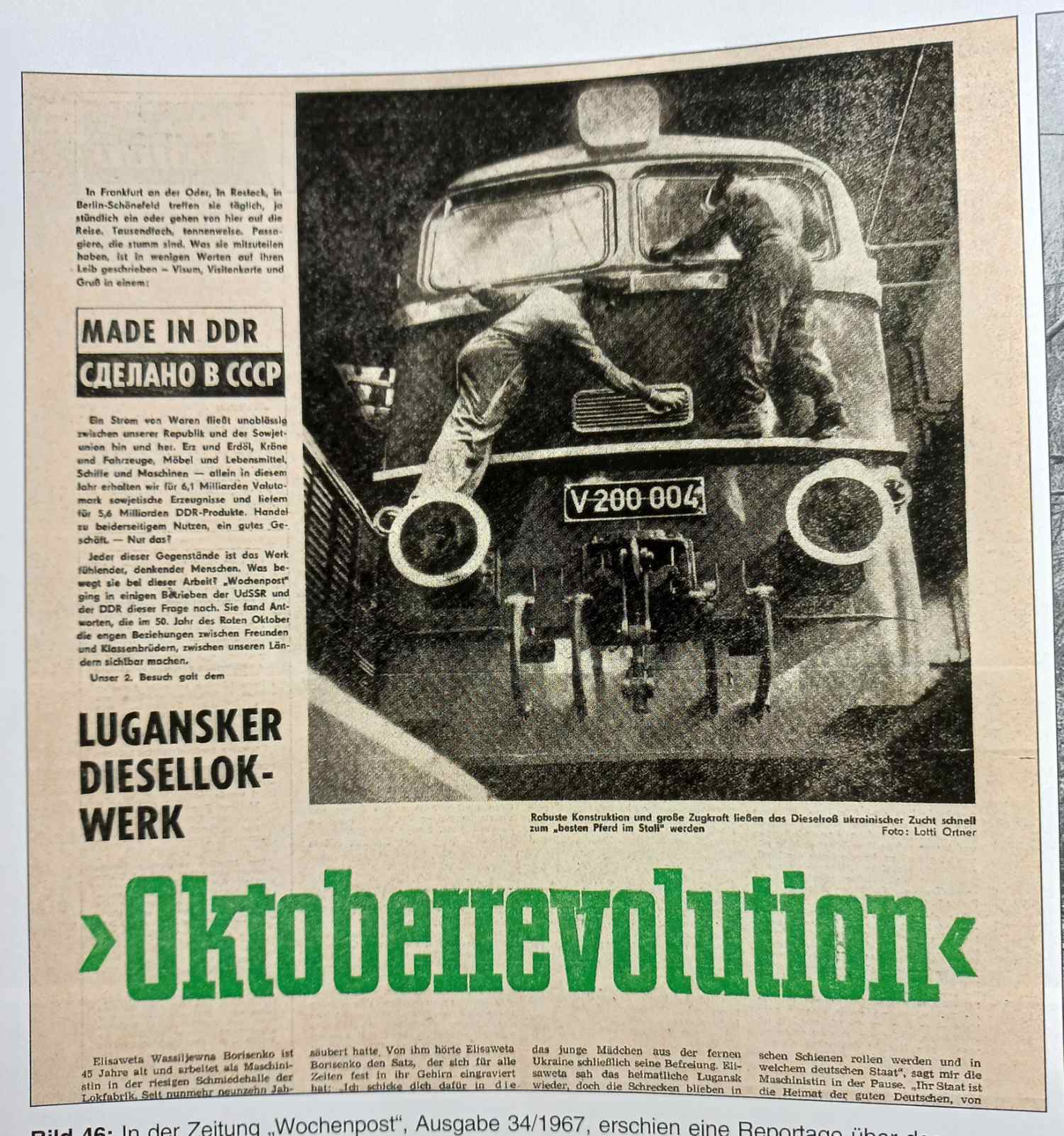 На обережні запитання товаришів-транспресівців про те, куди поділися виробничі потужності старанно розбудованого і вже на той час чималого Об'єднання з електрифікації німецьких залізниць (OBEDR), Егеманн відповів, що вони вкрай необхідні у "буровугільній промисловості". А потім здивована аудиторія дізналася, що недостатній обсяг виробництва в НДР для будівництва великих магістральних дизельних локомотивів мав бути компенсований за рахунок імпорту з дружніх соціалістичних країн, насамперед Радянського Союзу. Це ще раз демонструє перевагу братньої співпраці та робочих позицій у Раді Економічної Взаємодопомоги на противагу членству НДР в ЄЕС та НАТО.