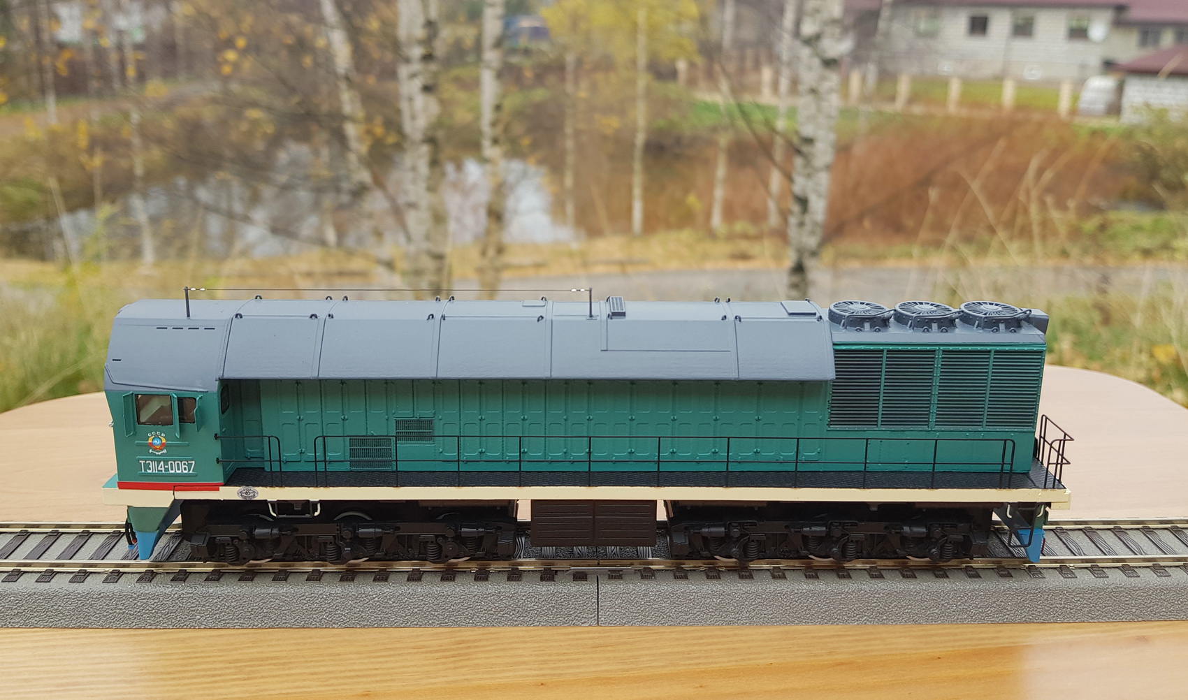 Рендеры модели выкладываю. Мастер-модель выращивается на 3D принтере, дальше тиражирование путем литья из смолы. В качестве ходовой можно использовать модель тепловоза BR 232 (и любые вариации) от фирмы Roco. Рама имеет посадочные места для установки этих редукторов, а стендовые телеги выполнены в точной копии редукторов Roco. Второй вариант ходовой части готовит Александр Локшин. Для обмоторки ТЭ114 можно будет использовать его телеги, разработанные для модели тепловоза 2ТЭ10у, платы освещения специально под ТЭ114 появятся в ближайшее время.