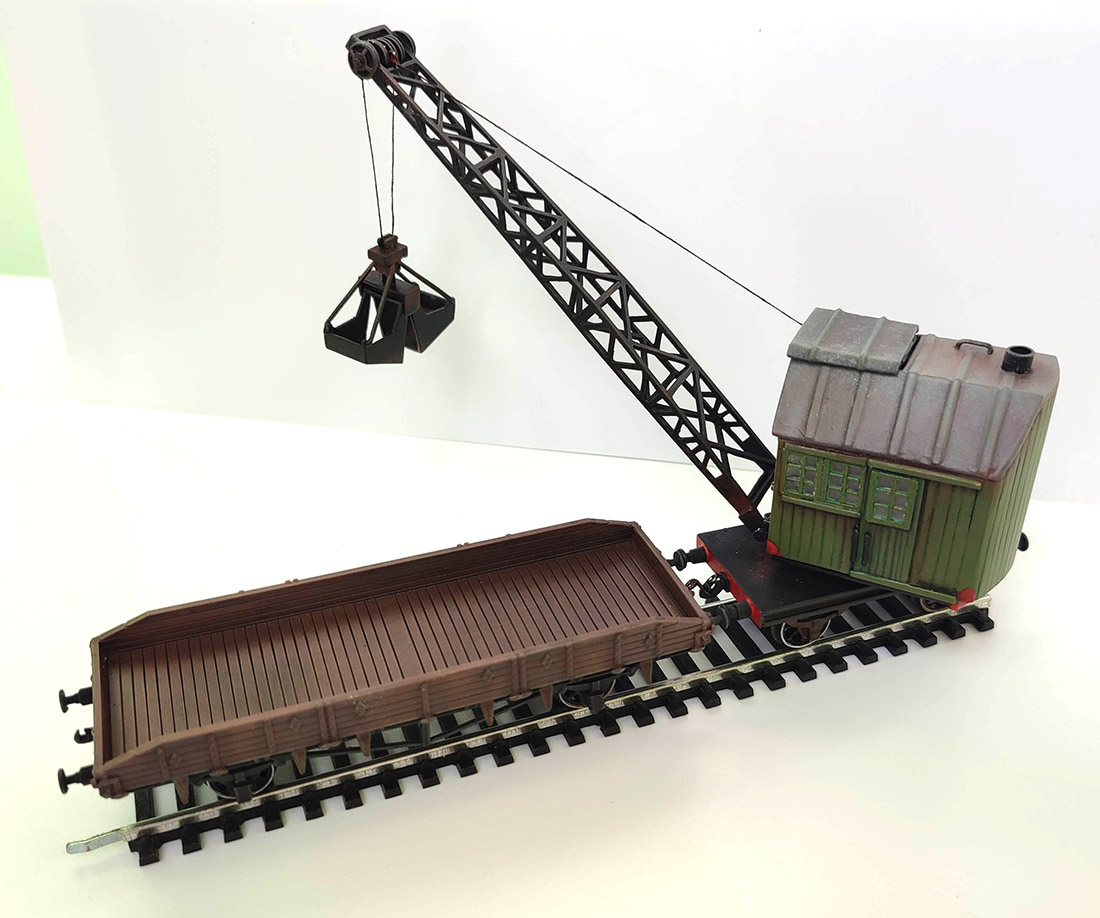 Подтягиваю хвосты и наконец доделал кран, который начал еще в первые месяцы войны, пока на Западной Украине был. Из инструментов был только канцелярский нож, напильники и линейка, так что качество грубоватое, постарался сгладить везерингом. Платформу спроектировал в Блендере и напечатал из смолы. Модель запланирована как статическая на макете в какой то перспективе, но в общем может ездить в составе. Длина тросов у ковша фиксированая, наклон стрелы регулируется намоткой барабана под откидывающейся крышкой