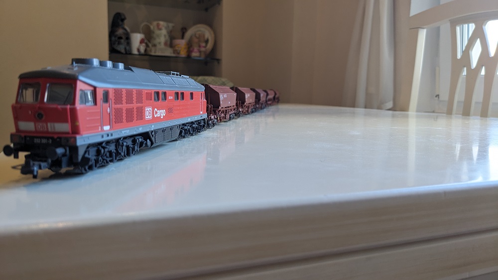 Один из первых локомотивов которые купили, "Людмила" фирмы Марклин переделанный под обычные рельсы. Выбор был очевидный он металлический и пережил самый трудный период когда ребенок был еще маленький.