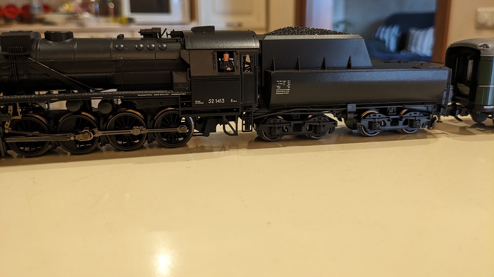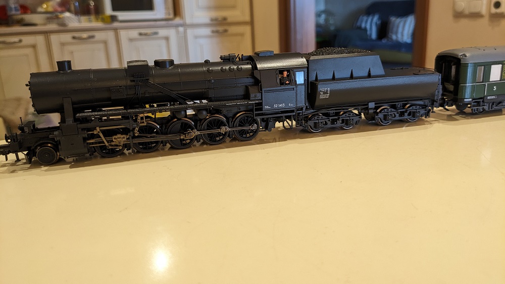 Один из первых локомотивов которые купили, "Людмила" фирмы Марклин переделанный под обычные рельсы. Выбор был очевидный он металлический и пережил самый трудный период когда ребенок был еще маленький.