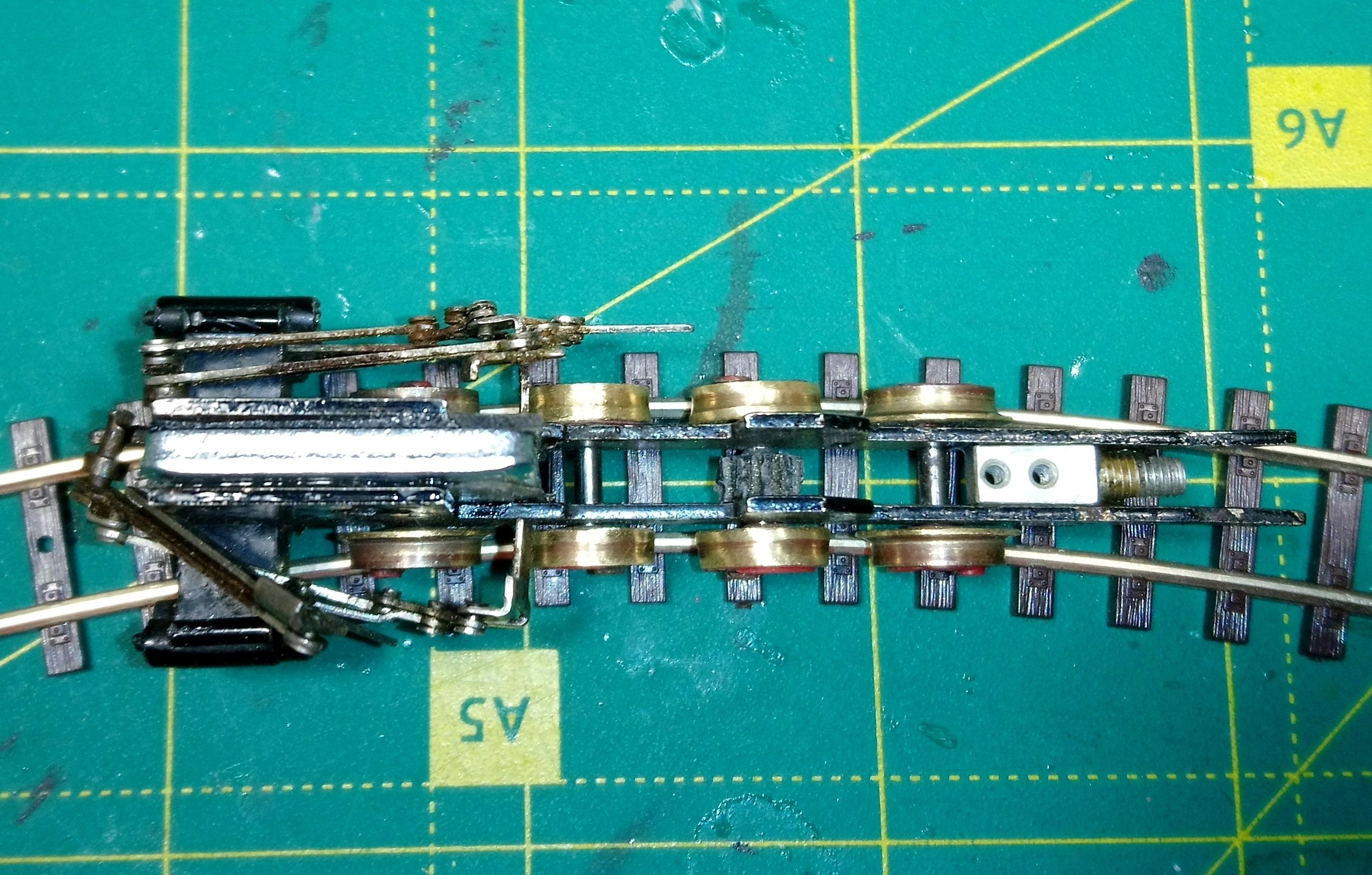 Навіть пружинки НЕМ шахт від Н0 не підходять. Залишив поки що як є. Баласту вагон