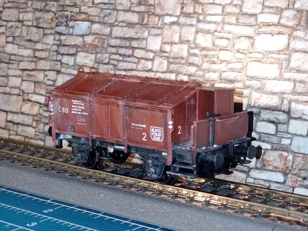 Вагон с тормозной площадкой, переделан в вагон из депо Брно (добавлены декали и немного травленки):