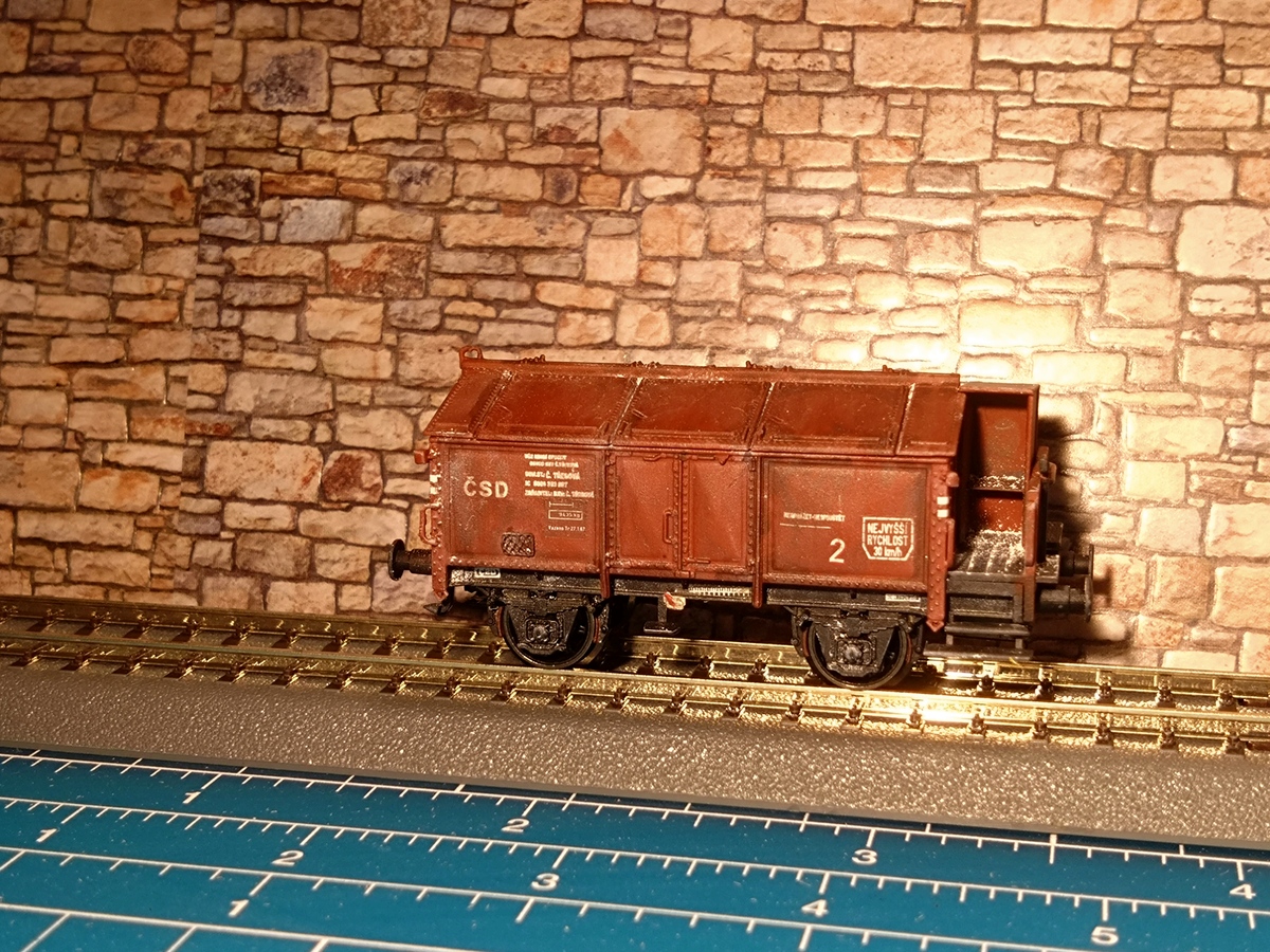 Вагон с тормозной площадкой, переделан в вагон из депо Брно (добавлены декали и немного травленки):