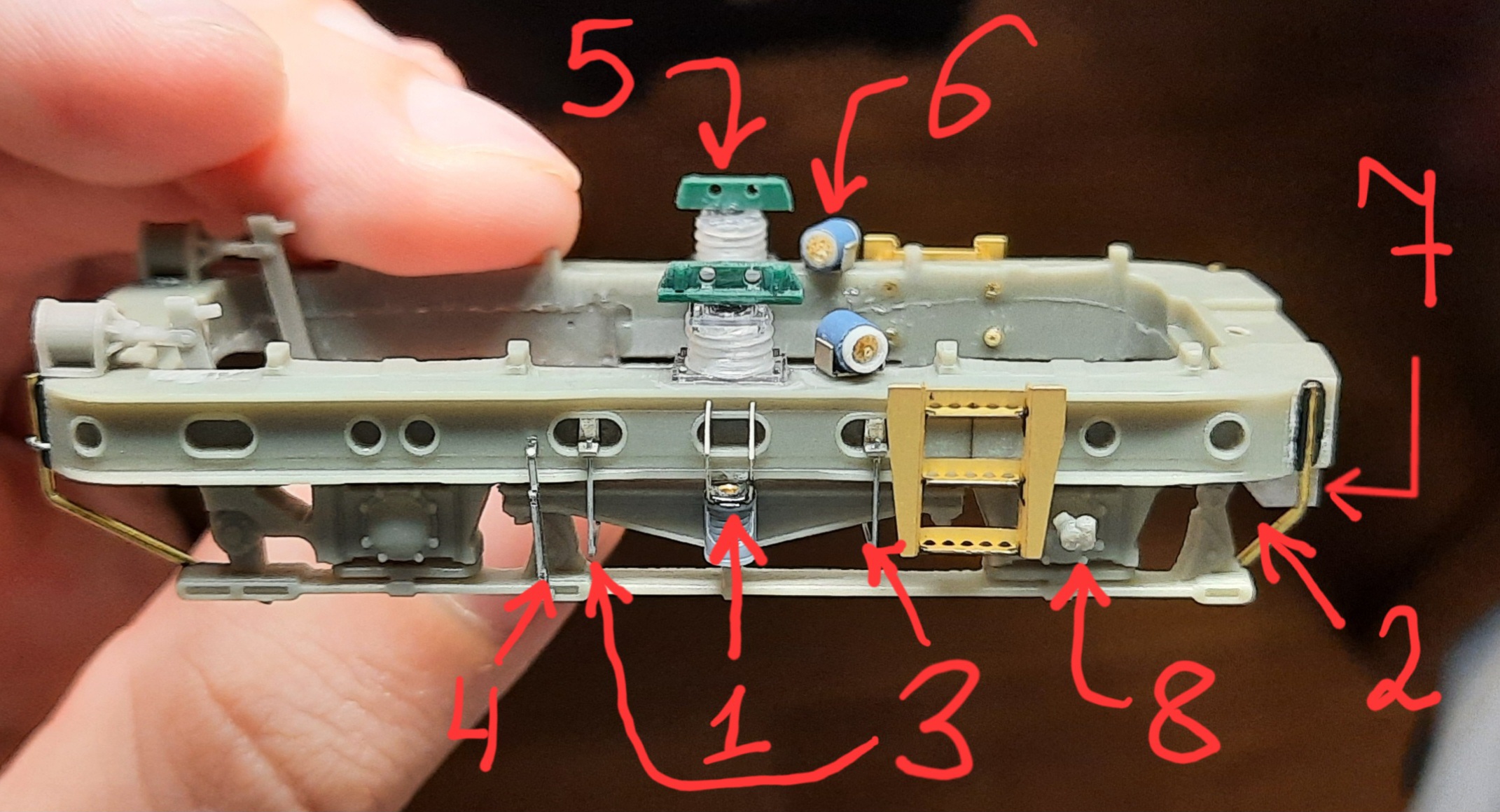 Похож на наконечник оптопары, только он по-моему крупнее....Leonid Popov писав: ↑27 вересня 2023, 14:36Установил краны песочниц снизу боковин кузова (в наборе их не было, спасибо Саше Дьяченко за любезно предоставленные). Сделал какие-то трубки по днищу, которые тоже видны. Из латунной трубки 0.7 мм и проволоки 0.3 мм сделал наконечники гибких шлангов, которые потом будут идти от этих кранов к трубкам на телегах.