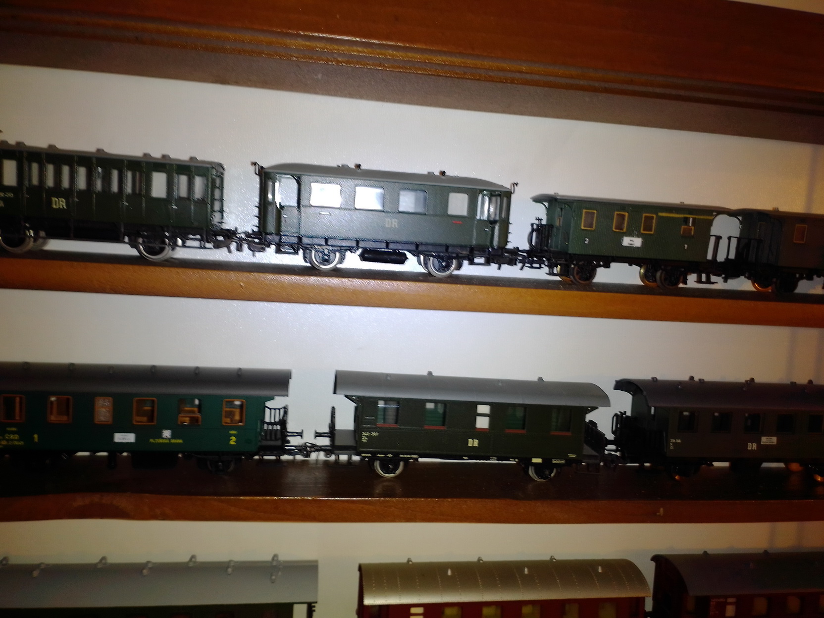 Ну, там не так уж и много раритетов именно ГДР. Я собирал и комплектовал коллекцию исходя из собственных предпочтений..., т.е., составы должны были быть функционально оправданы. Например: ремонтный поезд: BN 150, 3-х осн. вагон начальника поезда, 3-х осн. вагон для перевозки ремонтных бригад, 3-х осн. вагон-мастерская, ж/д кран с ручной лебедкой, платформа "прикрытия стрелы" с инструментальным ящиком с инструментами, платформа для перевозки колпар с колпарами. То есть на лицо Gutzold, Roco, Dietzel, Fleischmann. Ну, и другие составы в том же духе. К сожалению, есть несоответствия, обусловленные разными причинами: нежеланием расстаться с каким-то вагоном, не вписывающимся в данную концепцию, то что состав с данными моделями не помещается на полке (состав "Rheingold", в реальности, тащил BR 18, а у меня BR 62, - не влезет длинный...), швейцарский ресторан с пантографом, у меня едет в составе с BR 93 и немецкими вагонами местных линий, и т.д.... А в остальном..., все представленное, всех фирм..., уже снято с производства и является раритетом... Все локомотивы и вагоны имеют накидную сцепку, кроме двух составов со сцепкой "профи", т.е., покупал нужные сцепки и менял их, чтобы все нормально сцеплялось. Увы, на большинстве моделей тогда еще еще не было NEM-шахт...Эпохи: 3-4, как самые интересные, где можно было встретить и 2 (Rai-Mo, нефтевозы PIKO, BR 89...) и 4... Правда, у меня можно встретить и 5-ю :D, но тут просто не удержался... Лучше, конечно, все увидеть своими глазами, но пока не вижу "кнопок" или других инструментов для вставки фото...