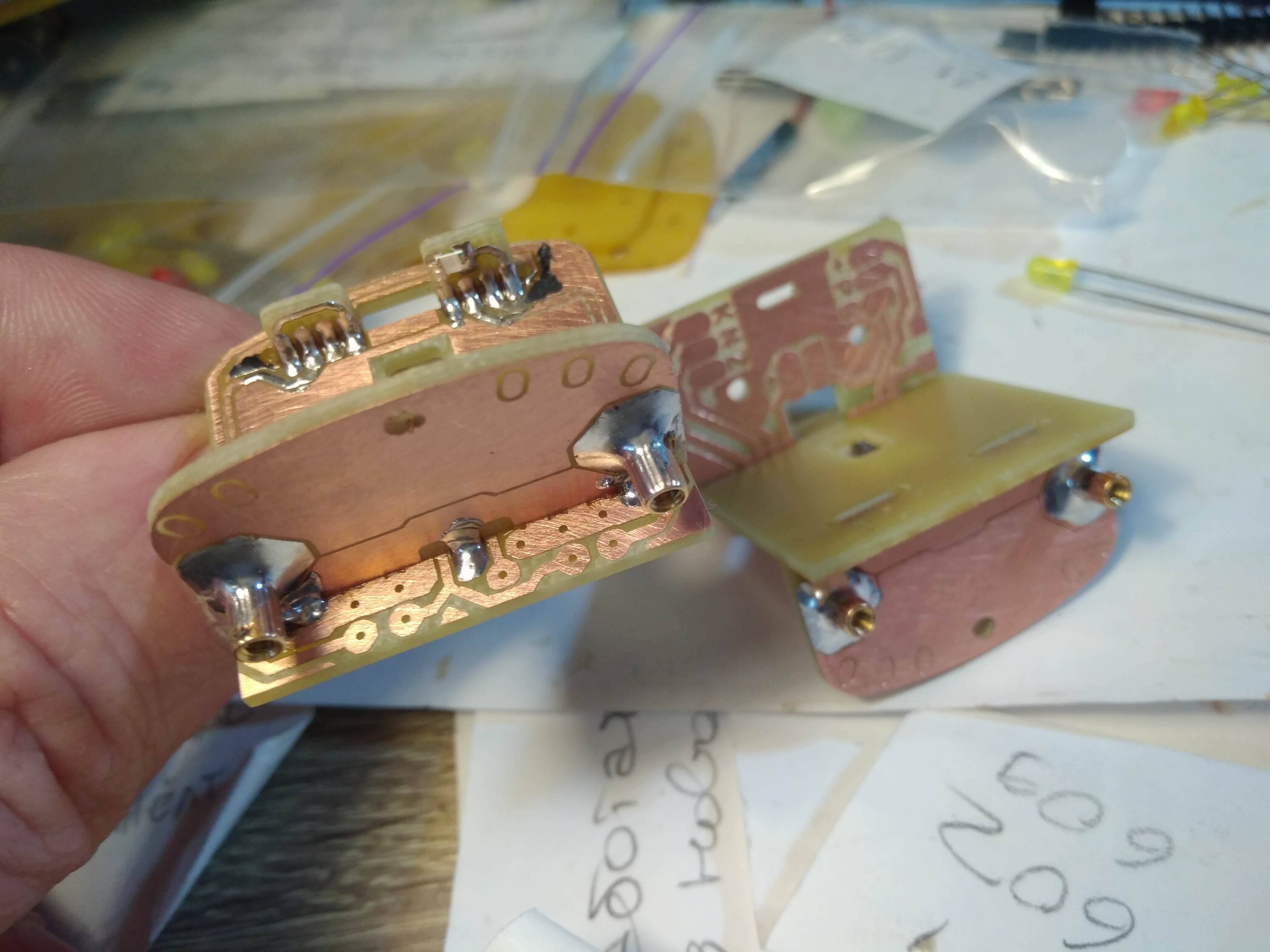 и трассы дорожек к светодиодам теперь проложены на платах, а в первой версии я делал проводами, что было крайне трудоёмко..