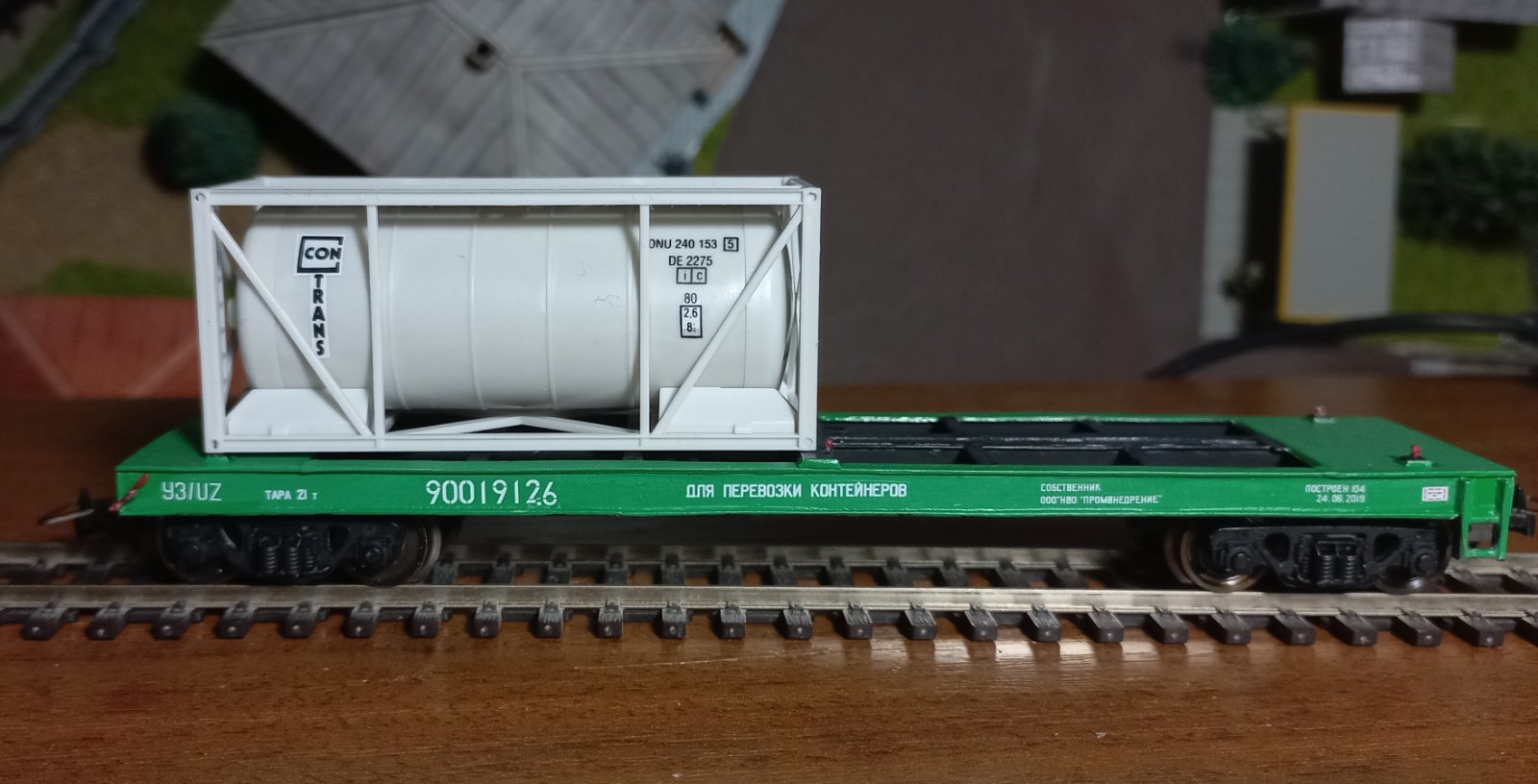 Довго шукав, але таки не знайшов "піковський" контейнеровоз у незайманому стані. Зазвичай, з них обдерте було все - починаючи від контейнерів, і закінчуючи дрібними деталями. Стійки, підніжки, тощо. Був варіант взяти нове "Піко", але ті вагони зі стартовиків без жодних написів... Дякуючи уважному Stinky, який побачив у продажі пакетик з накладухами на подібні вагони, стало можливо шукати варіанти з втратами. Натрапив на платформу, яка була більш-менш ціла. Але були відсутні стійки, та приклеєні нерідні контейнери.