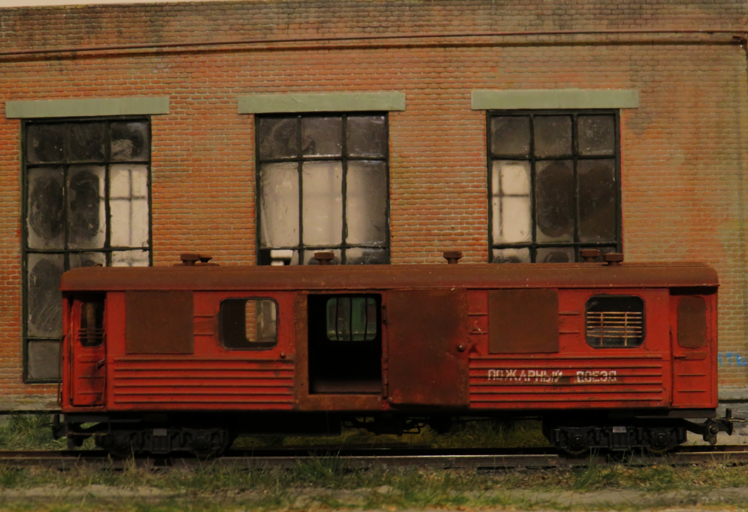 Этот вагон - часть будущего пожарного поезда, который пока что включает еще только крытый вагон ДМЗ. Есть шанс, что в этом году будут выпущены цистерны - тогда пожарный поезд будет завершён.