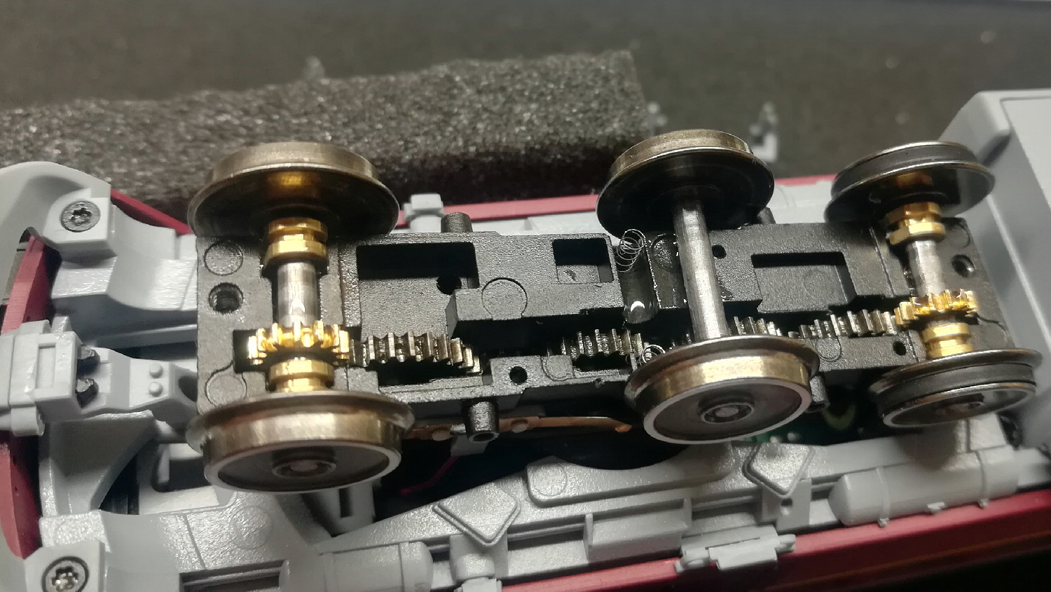2. Вага локомотива не 675, а 604 грами. Різниця припадає на коробку, у якій зважував пан Ігор. Тобто, у моделі типова "машкова" вага: "Піко" та "Роко" десь по 530-550 грамів. За рахунок металевого кузову, раму зробили меншою, і в отриманий простір засунули повно цифрового приладдя. Не стали робить як "Гутзольд", у якого Br 119 забитий чугунієм під самий дах та важив близько кілограма (при цьому візки на ніжних пластикових защьолочках, ага). Чесно кажучи, люблю важкі моделі, але не ціною надійності та якості.