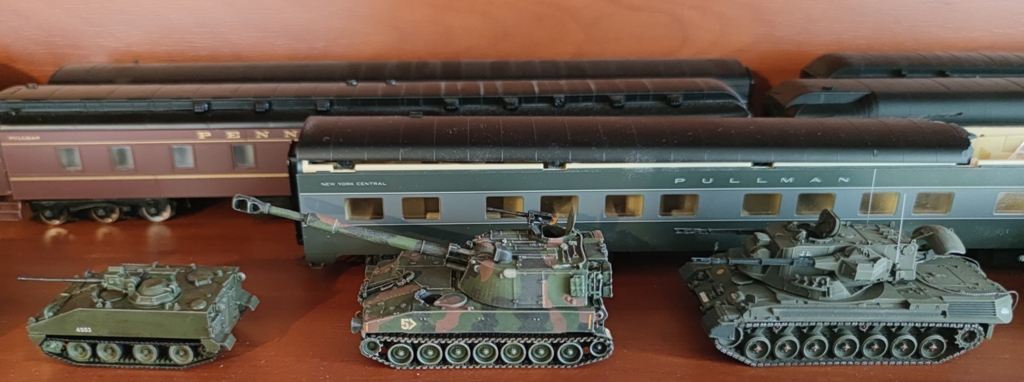 В итоге до войны основные мои усилия были направлены на макет, а остальное - по остаточному принципу. Но в 2022 году все поменялось. Постройка макета была вынужденно приостановлена, но поскольку руки чесались что-то делать, начал более-менее активно собирать разные дополнения к макету. Доклеил все запланированные домики и переключился на танки, автомобили и т.д.