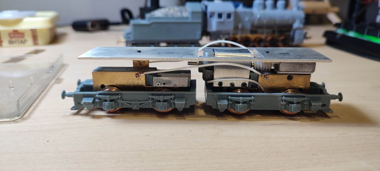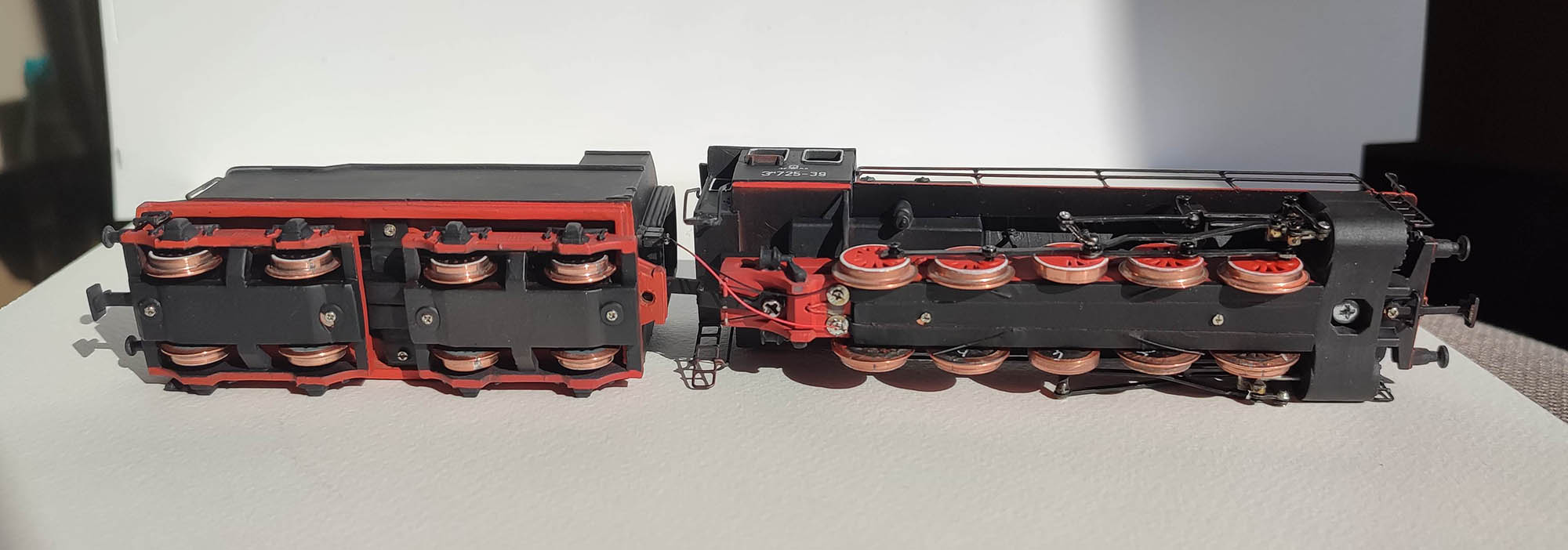 начал делать трехпарку завода Борзиг. В этот раз двигатель с редуктором в паровозе, электрика будет в тендере, токосьем со всех колпар