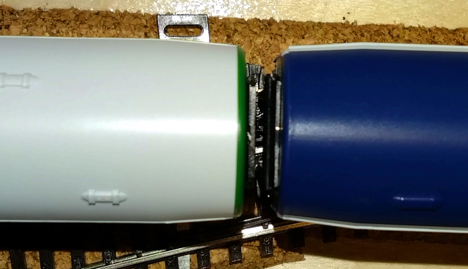 Рядом Роко и Тиллиг в одном составе смотрятся несколько странно. Если не приглядываться - вполне органично, только и того, что небольшой зазор между ними (видимо, зазор от расположения сцепки на Тиллиге, поскольку два вагона Роко стоят почти вплотную, не совсем понятно, насколько это хорошо для поездок на макете, тем не менее). Но у них несколько отличается геометрия крыши (полмиллиметра на корпусе в одну сторону и столько же на торце в другую дают о себе знать) и при одинаковой окраске эффект может быть не совсем приятный. В любом случае, явного и нарочитого несоответствия у моделей нет, есть только мелочи, но дьявол прячется в деталях, а их набралось, как видите, довольно много.