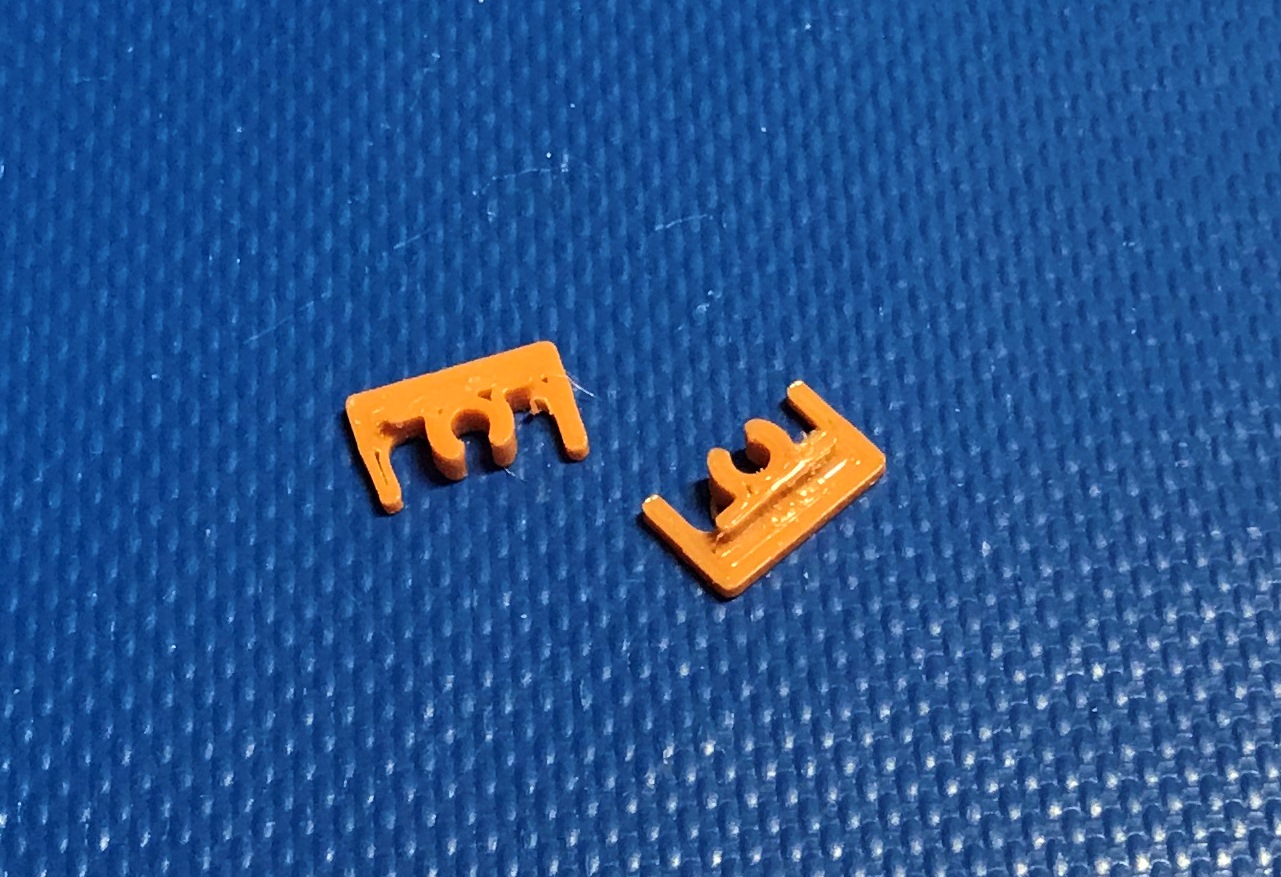 Ще є експериментальні тримачі колісних пар для осі 2мм. Вклеюються прямокутні пропили в рамі, зроблені напилком. Такі, але на 2,5 мм успішно використали для ремонту юніорівського Бр-80. Вічна їхня проблема - поломка цих тримачів через кріхку пластмасу. :( Тут же використовується міцний, але гнучкий пластик. Будуть червоного або чорного кольору.