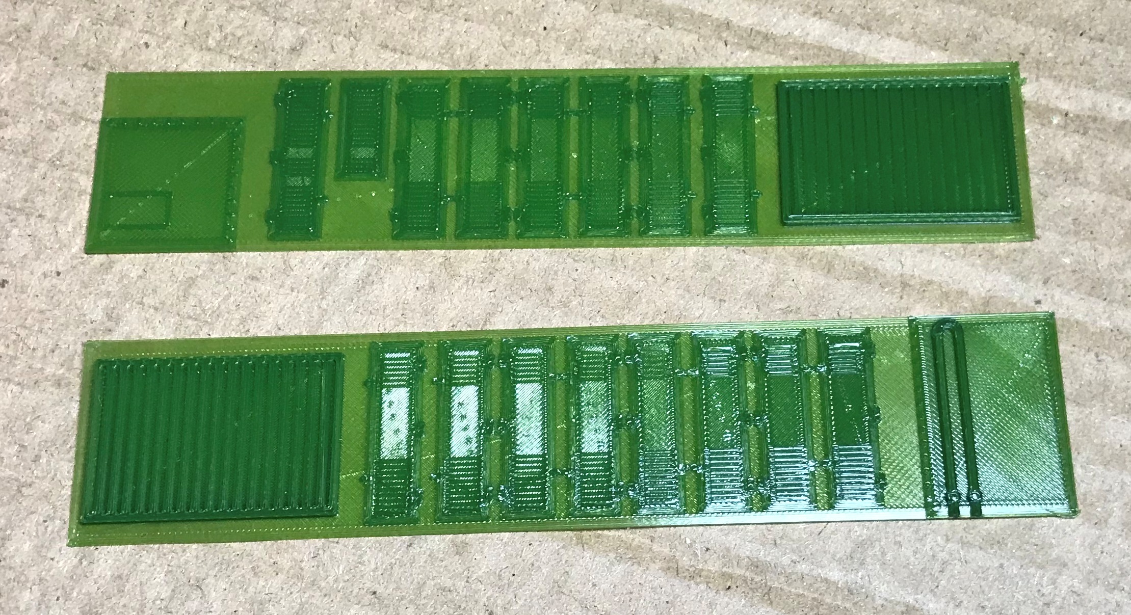 Бокові стінки двовісного вагона дальнього сполучення на базі "Єгоровца". Ідея в тому, щоб переробити приміский "егоровець" на такий. Знимаемо все зайве з боковин, трохи зсовуєм вікна, наклеюємо ці деталі поверх боковин. Іх товщина 0,3 мм. І отримуєм гарний результат.