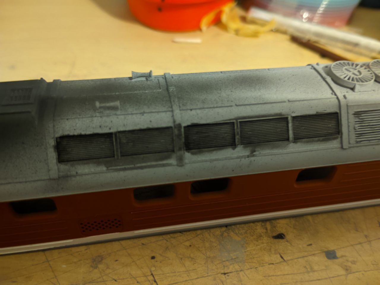 В новогоднюю ночь я решил заняться везерингом... роковая ошибка, модель крыша и корпус были загажены в плохо-намешанной смывке и в плюющемся аэрографе.