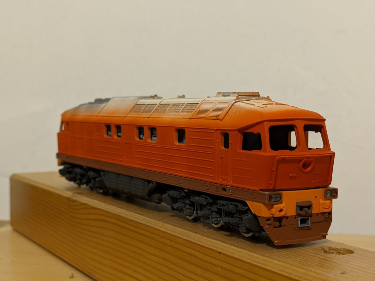 После везеринга было принято решение о полной перекраске, изначально хотел сделать ТЭ109-017 в голубом окрасе, но в последний момент решил сделать машину под 016 номером.