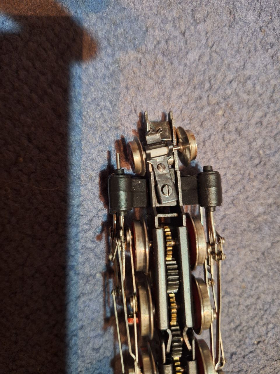 А сьогодні я взяв баласт від іншого бр80, підняв баласт, поки що на пружині, прикрученій до опори. Просвіт між рамою і котлом виглядає реалістично і прикольно. Вперше катав з корпусом, запинки і зіскакування передньої пари на стиках списую на те, що рейки на дуже нерівній підлозі, виходять якісь американські гірки. Віднесу до батьків, в них по рівній підлозі щоб навколо ялинки з вагонами їздив. Щодо приводу на передню пару треба його таки зробити, бо та пробуксовка 2 і 3 пари виглядає ефектно, але неефективно. Шестерню не дуже хочу, бо її буде добре видно, я дуже радий як вийшло, що більша частина деталей шасі закрита корпусом. Тому якщо зрозумію як зробити чи купити дишла, то через них, якщо ні - через шестерню. Треба ще передню пару купити як ті 2. Корпус буду переробляти вже після свят щоб вийшло щось таке, як у Вовера. Відео:
