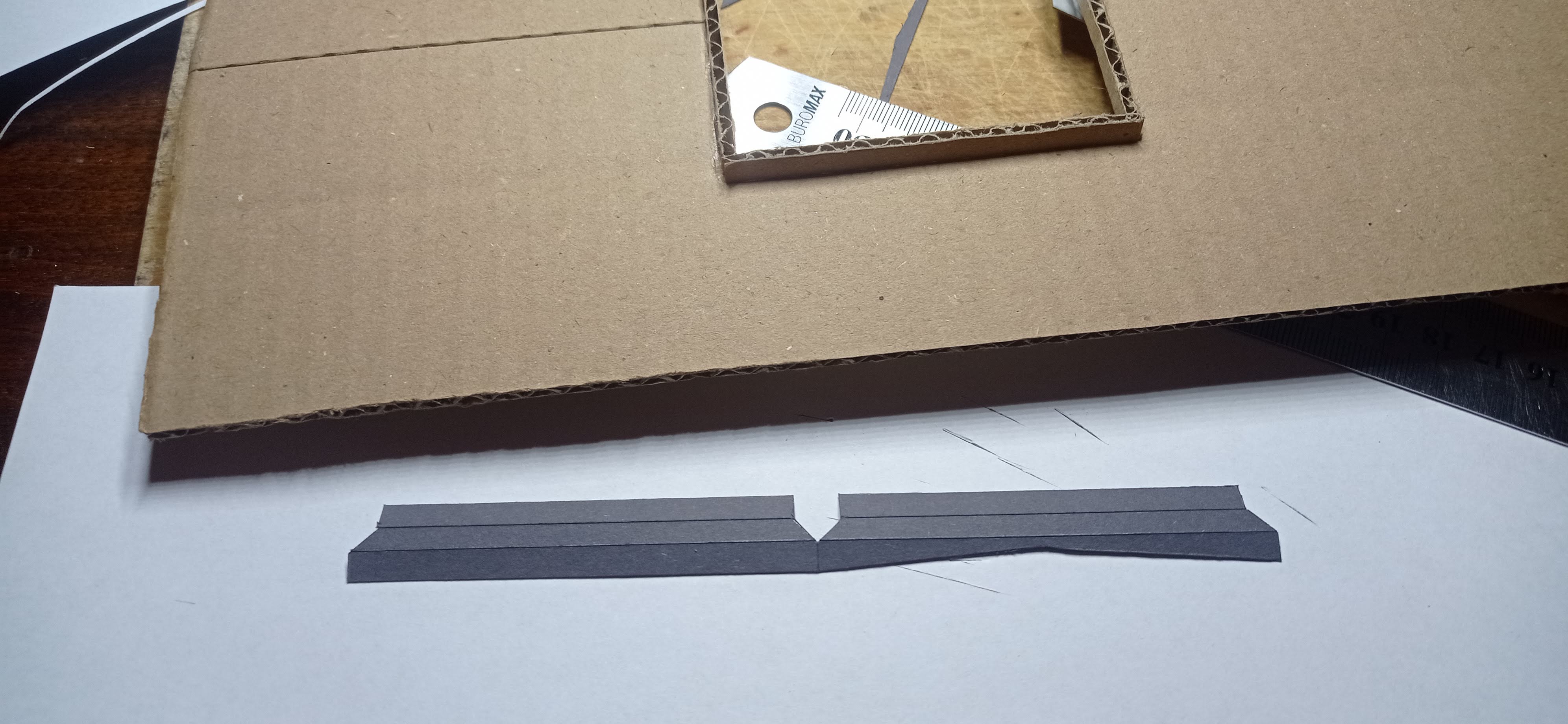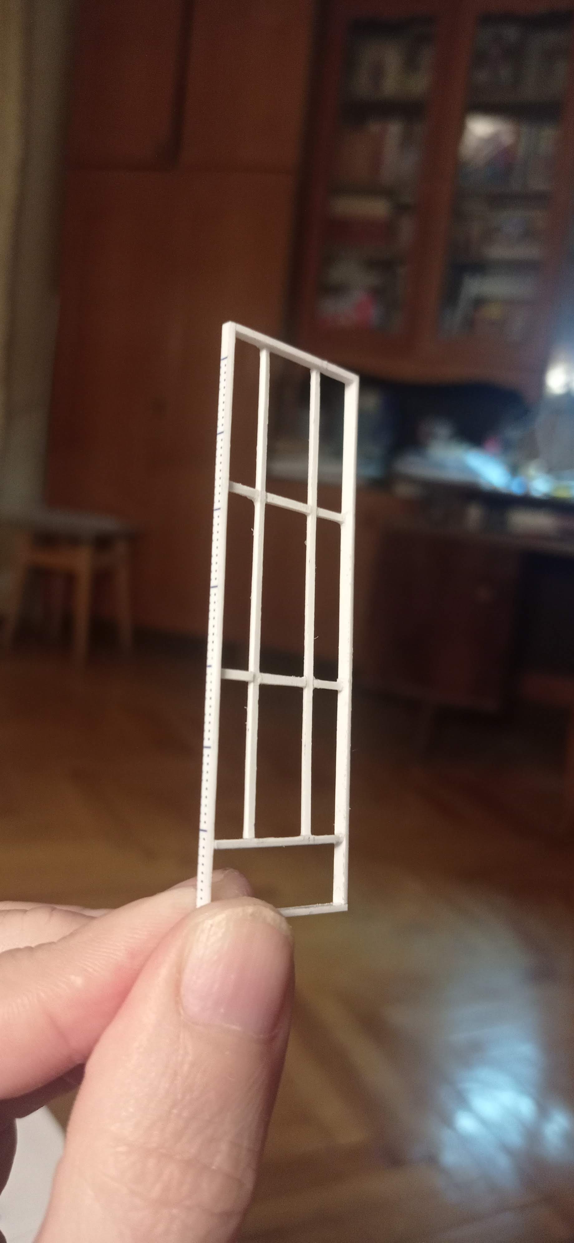 Далі сам процес. Виготовлення з картону основних конструкцій. Але враховуючи те, що картон дуже гігроскопічний та його веде від вологи, вирішив віконні рами зробити з пластику.