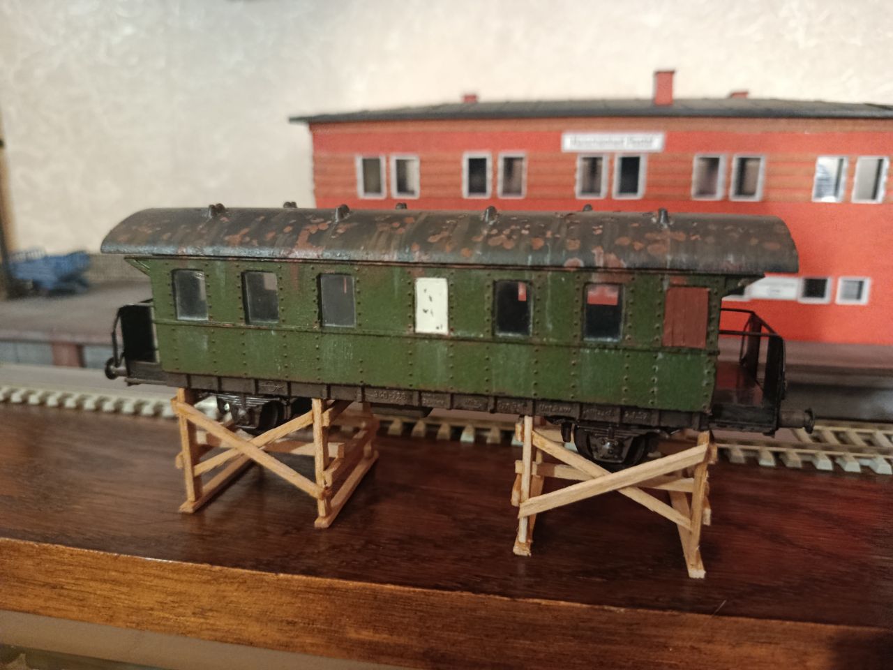Вирішив зробити тимчасовий сигнальний пост зі старого пікошного юніорівського доннербюхсе та трішки поекспериментувати. Вагон без надписів і скління.
