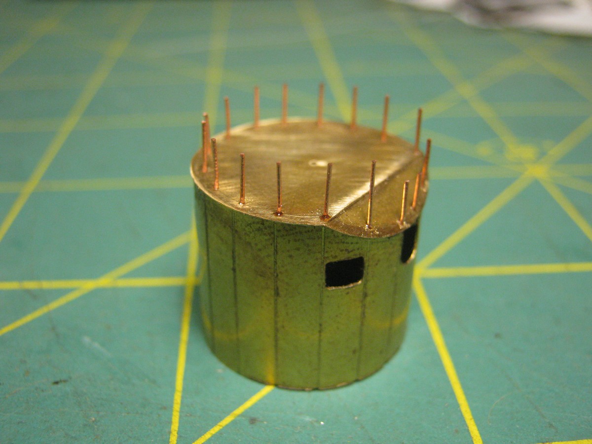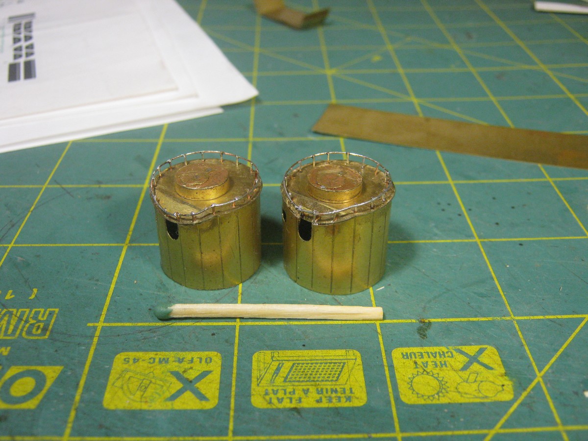Сделал поручни трапов и начал крепить щиты на амбразуры командирской башни и буферные фонари. Полагаю, что одну амбразуру надо будет вырезать и изобразить открытой.