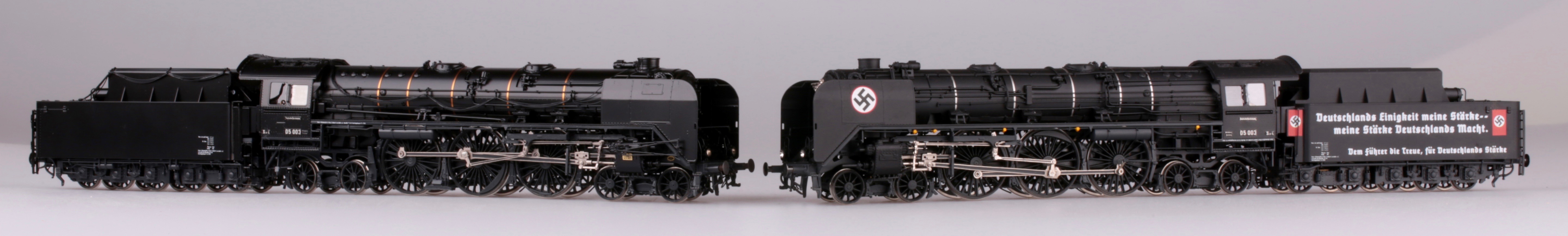 Я коллекционирую железнодорожные модели более 35-лет и для меня в первую очередь важна сама модель,мастерство ,с которым она сделана,точность, максимальное соответствие прототипу, редкость, ексклюзивность и....естественно историческая достоверность. Не буду спорить ,что на некоторых Метакитовских моделях последних лет выпуска встречается очень спорная пропаганда и лозунги,но в основном это касается австрийских и восточноевропейских версий. И на вопросы- было- не было, очень непросто ответить односложно и утвердительно.Но BR 05 003 очень известный и легендарный локомотив.Поэтому маловероятно ,думаю практически не возможно, что всеми уважаемая германская! компания, которая строит модели топ- уровня и в музейном качестве, допустила вариант "по -мотивам" .Тем более ,что все без исключения модели Metakit очень тщательно и подробно обсуждаются на предмет точного технического соответствия и исторической достоверности на всевозможных профильных ресурсах,людьми,которые, поверьте на слово, очень "в теме". И учитывая возможность доступа компании ко многим ,включая и закрытые для обычных пользователей,архивам и оригинальным заводским чертежам, ошибки и неточности не только маловероятны,они практически исключены. Особенно в тот период ,когда Metakit делали нестандартные версии с особой точностью и тщательной проверкой на историческую достоверность.Вы даже не представляете ,насколько дотошная и "занудная" публика на азиатских и европейских железнодорожномодельных форумах,это не американцы, для которых "по-мотивам" -это норма.Тем более ,когда речь о 05-м,я даже не могу себе такое представить.Просто очень хорошо помню обсуждение и шквал критики после выпуска 18 201 от Фулгурекс, когда насчитали около двадцати ошибок и неточностей соответствия к прототипу.