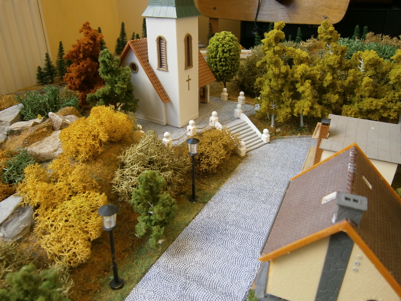 Демонтував церкву. Основу під нею буду міняти, "перестелив" бруківку, приміряю світильники.