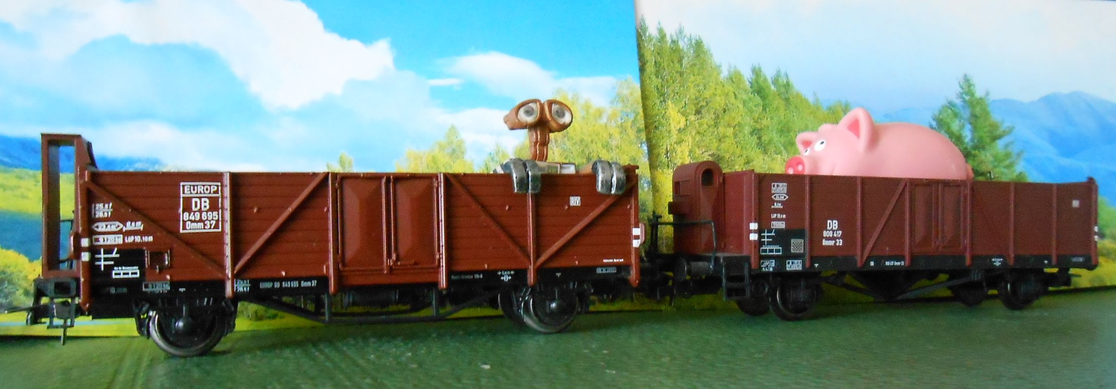 Пара полувагончиков ДБ,3й эпохи.При этом оригинален первый,с переходной