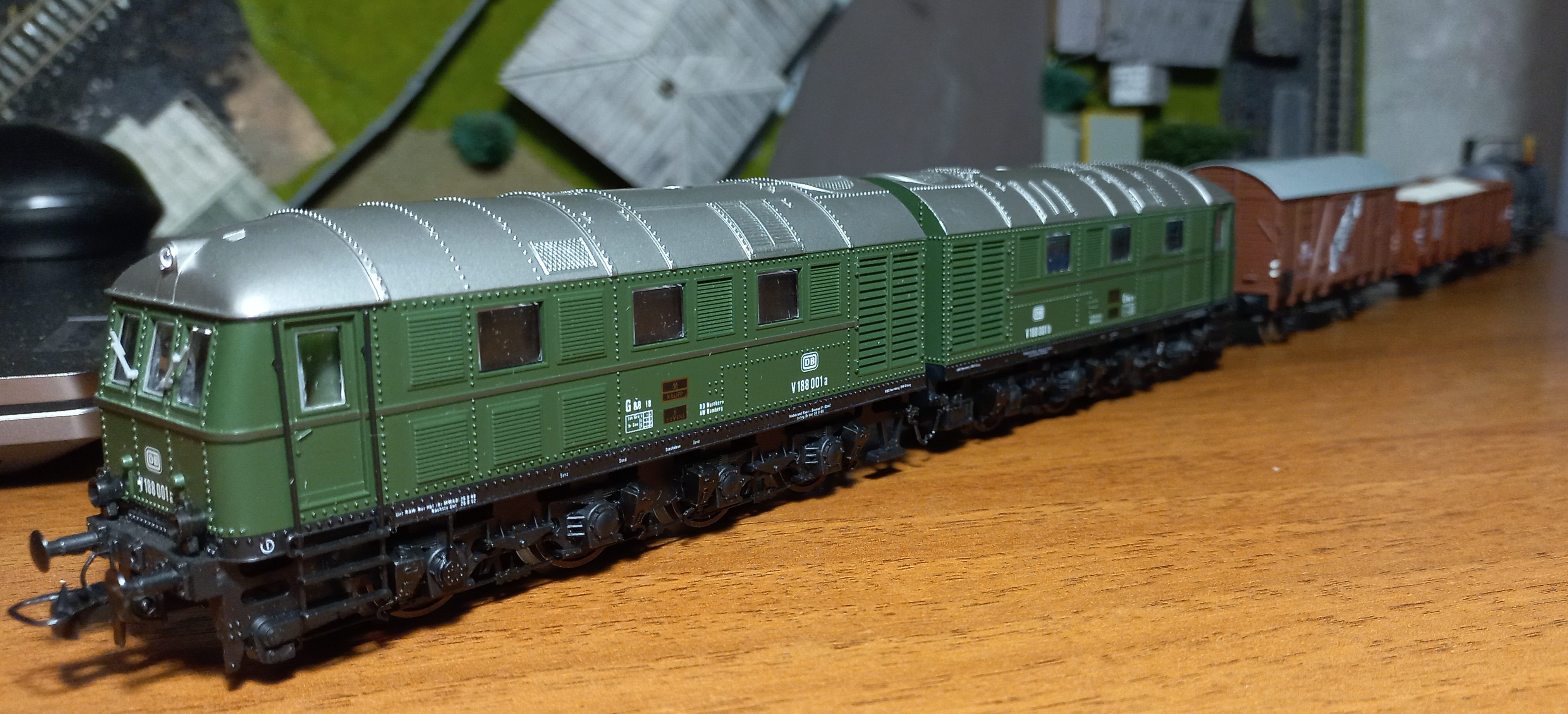 Стал обладателем схожей модели, потому приподниму данную тему. Начну с хорошего: тепловоз отлично ездит (тихий и тяговитый), и смотрится на макете отлично. Двухсекционный "европеец" - это редкое явление. 188-й отдаленно напоминает старые советские локомотивы, вроде ВЛ8. Сравнивать тепловоз и электровоз конечно некорректно, речь именно про общее впечатление, особенно от массивной ходовой части. Но при этом, он небольшой. Обе секции по длине как один 118-й. В общем, для маленького макета - самое оно!