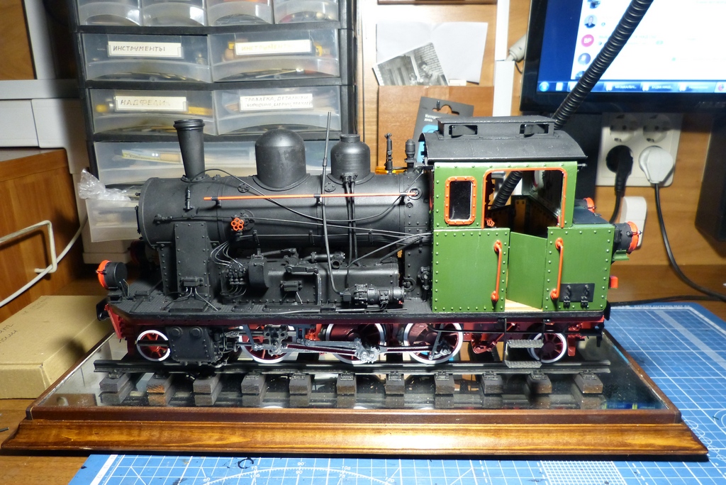 Установлены последние трубки,две к электрокоробкам и две от вентилей котла к пароразборной коробке на топке.Остались таблички и надписи на борта будки.Ну и общий вид