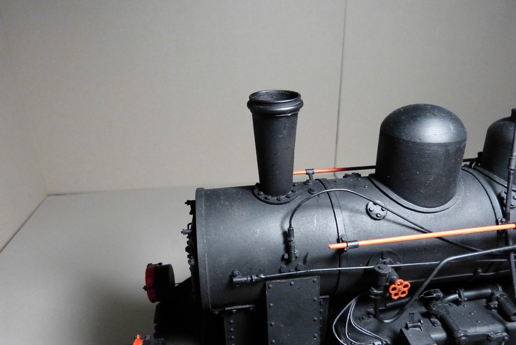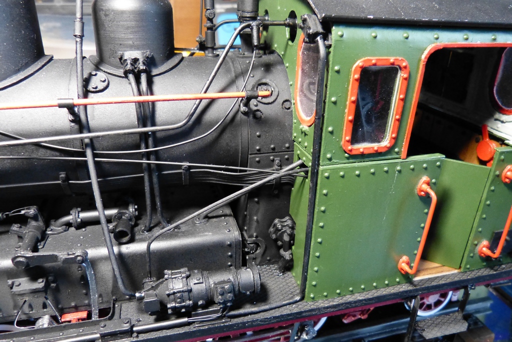Установлен верх будки,будка машиниста готова,осталось две трубки от распредкоробок,две трубки с клапанами от вентелей на котле к пароразборной каропке,рычаг свистка,тяга к сухопарнику и таблички с надписями