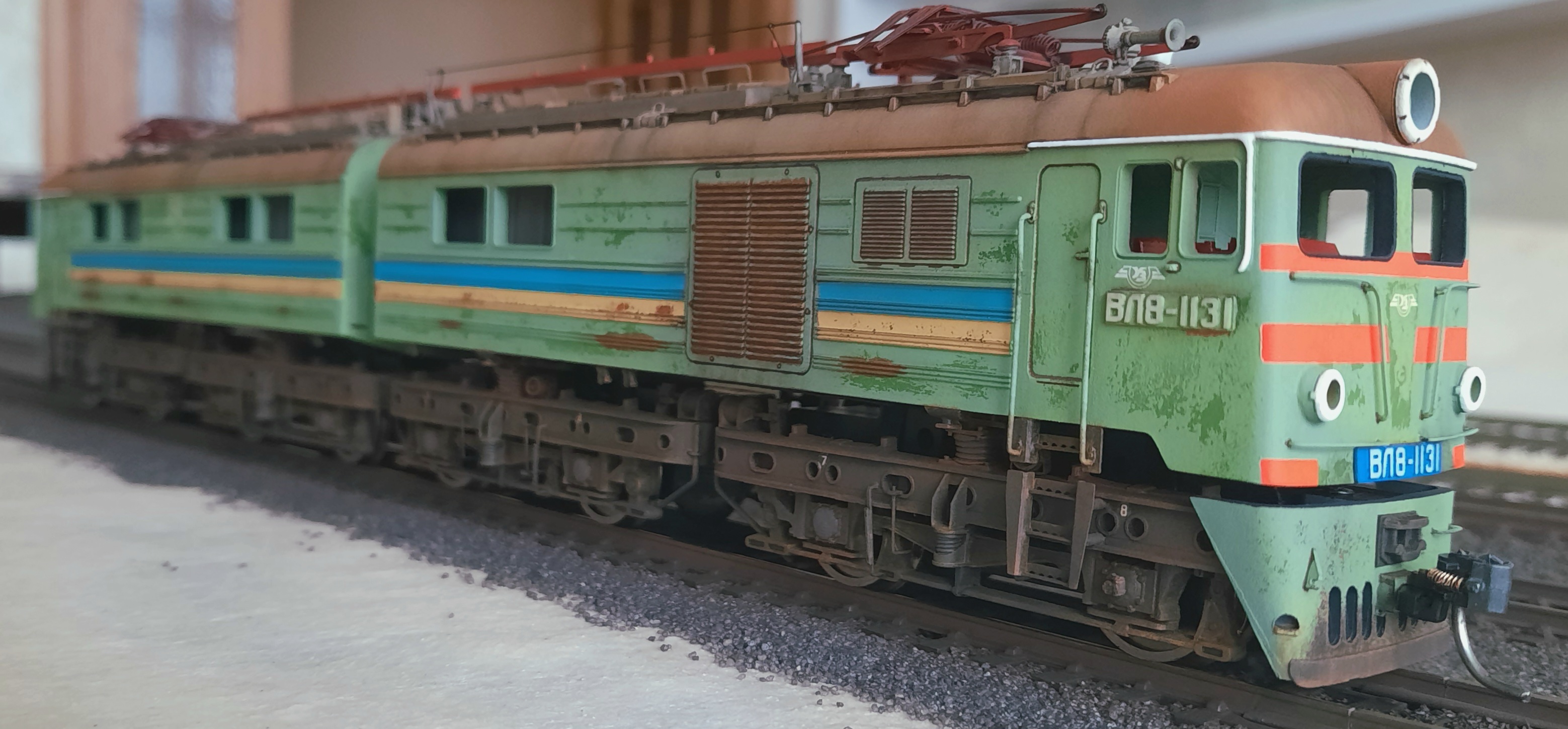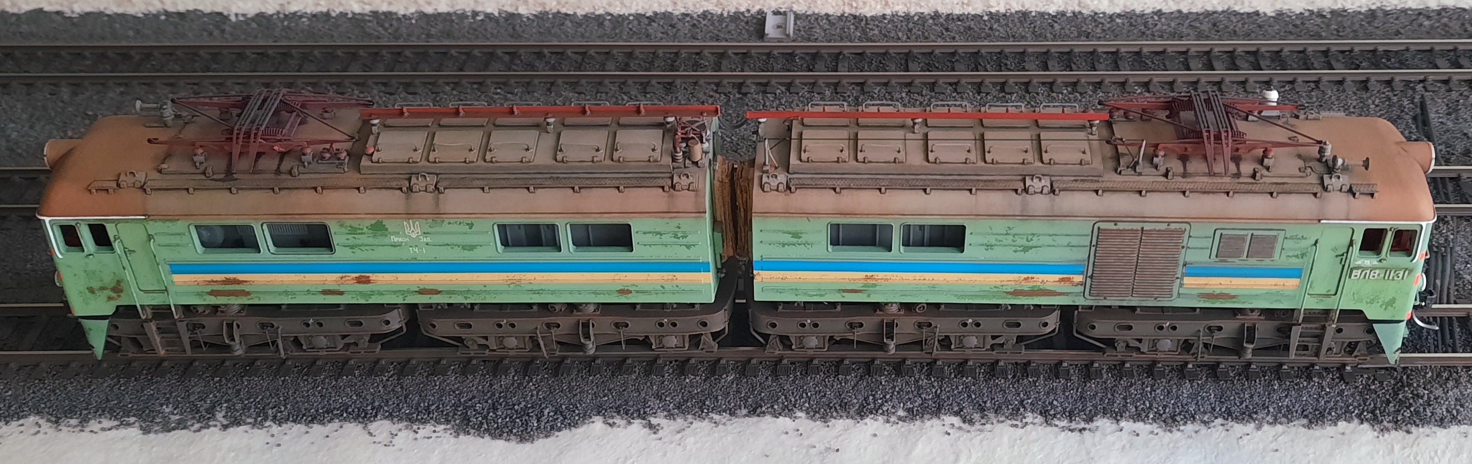 неймовірне старіння моделі. Імітація фарби, що вицвіла, іржі, пилу не відрізняється від реальності. Сама модель виглядає як справжній електровоз.