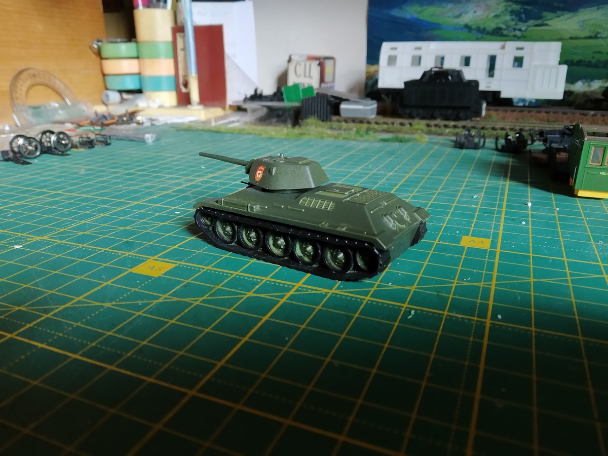 А в чем тонкость? Черный/коричневый в "рельефе" танка проступал бы под зеленым?