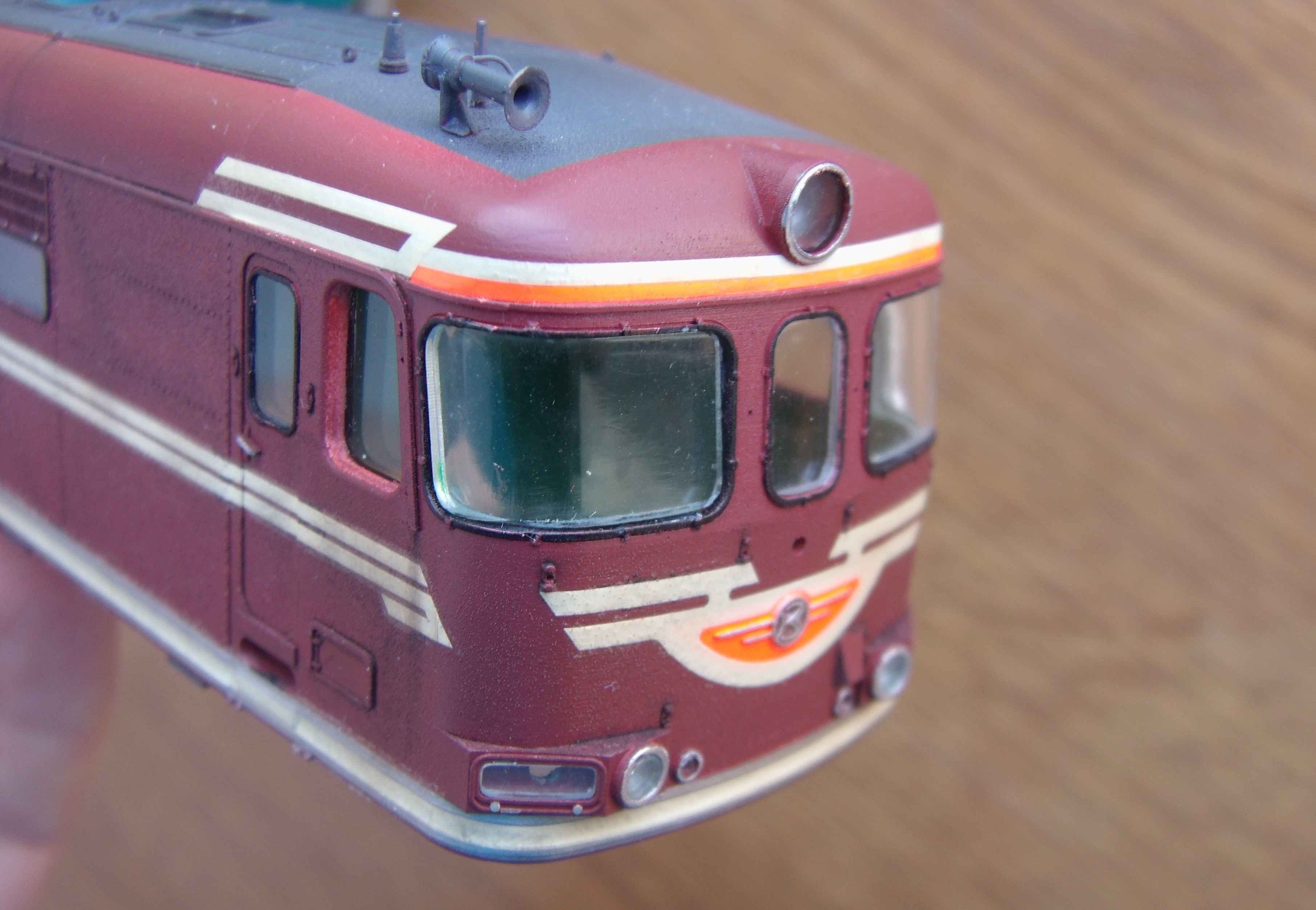 Ставили мы перед собой задачу делать машину "в повседневной эксплуатации", вот как получилось... Лично меня больше всего ошеломляют до восторга потёки с крыши к водостоку, они как бы доказывают зрителю стопроцентно что это не просто выделенные смывкой детали, а именно художественно нарисованные элементы, как на картине, которые связывают всё вместе, и создают ощущение действующего тепловоза...