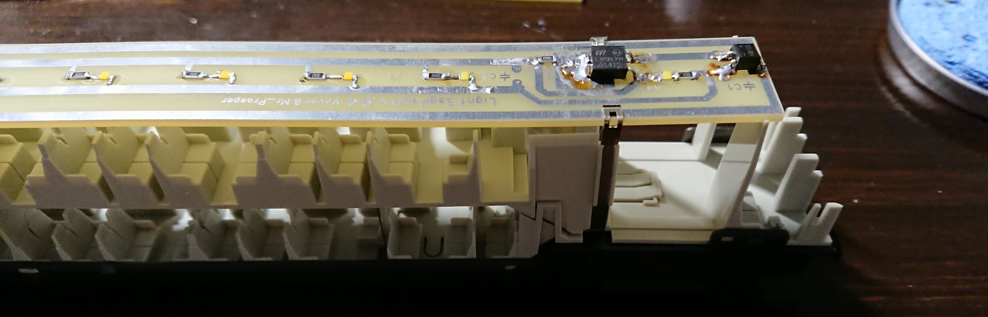 Давно было в планах заменить штатные фляйшевские платы освещения в своих Гёрлицах по причине их перегрева при продолжительной эксплуатации на цифре. Как результат - может оплавить крышу вагонов. Для начала поменял только верхние платы, поскольку нижние имеют бОльший зазор до нагреваемых поверхностей.