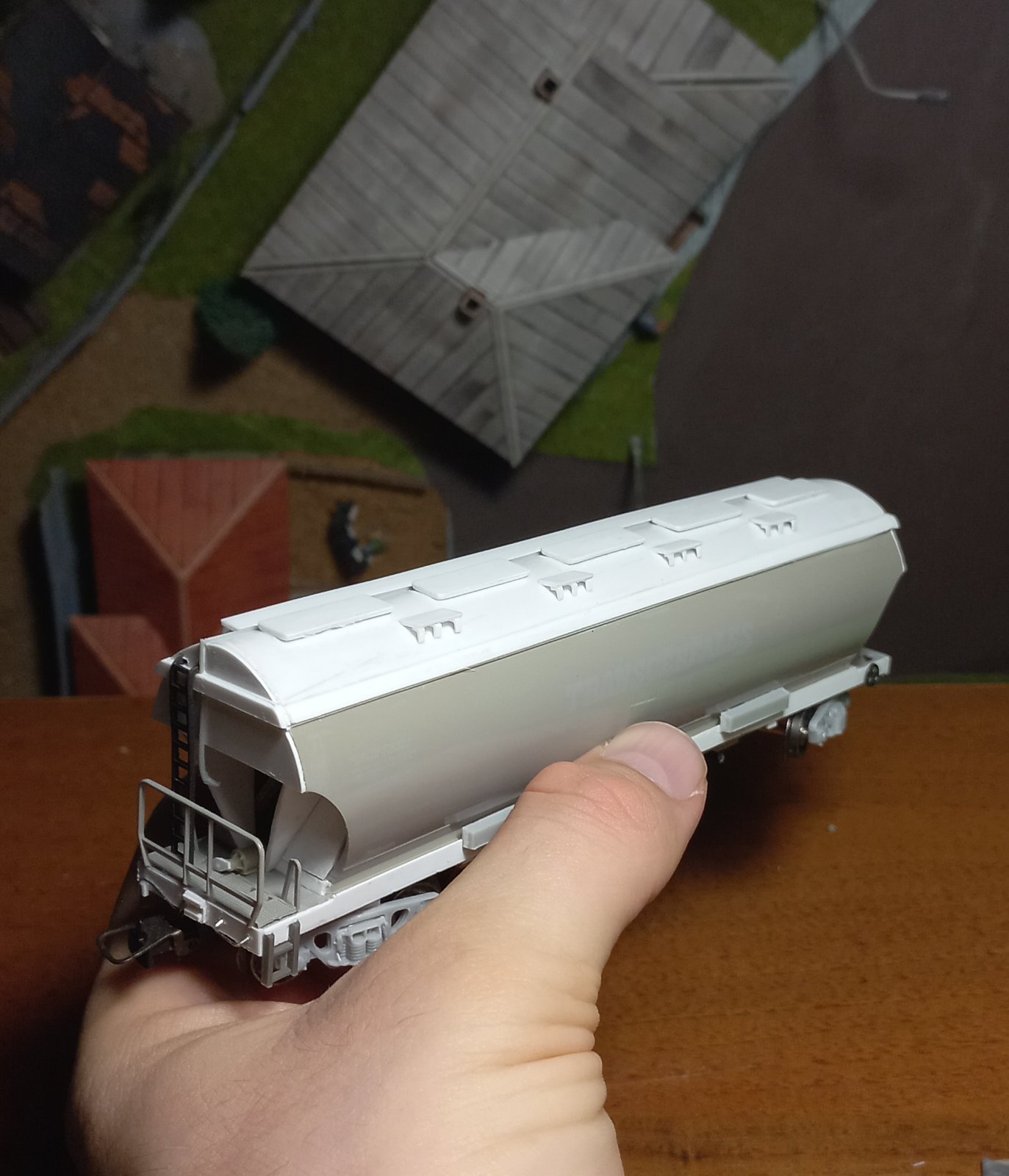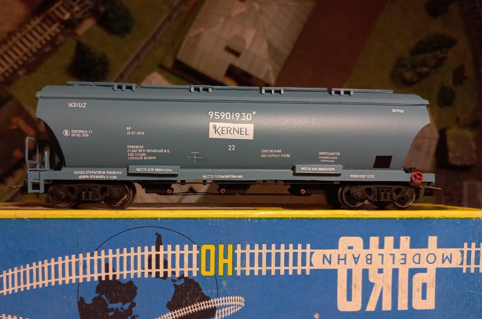 Легка конверсія "Модіміо" у критий вагон УЗ. Перефарбував, легкий везер, прикрутив ходові візки. Це той випадок, коли готовий виріб з пластику/металу дешевше за смоляні криві кіти...