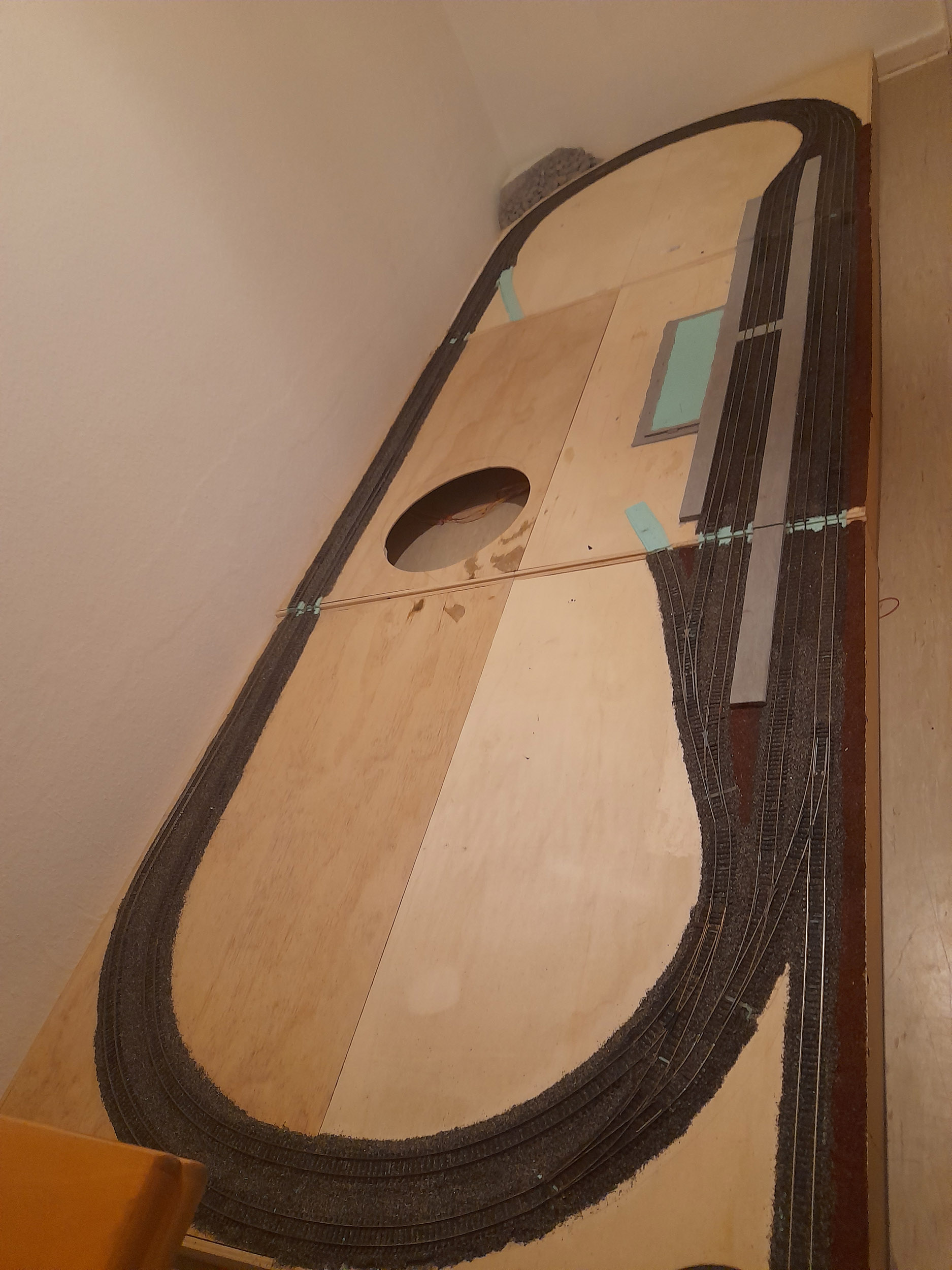 там пластиковые изостыки, потому смотрится большое расстояние. если действительно будет сходить, то на уровне полотна попытаюсь заделать чем-то. хотя вид далёкого расстояния дает прозрачный пластик. в самом правом нижнем там все таки пропайка что и опять дает ошимбочное представление вида сверху. проверка была и локом и вагонами на сход во время монтажа