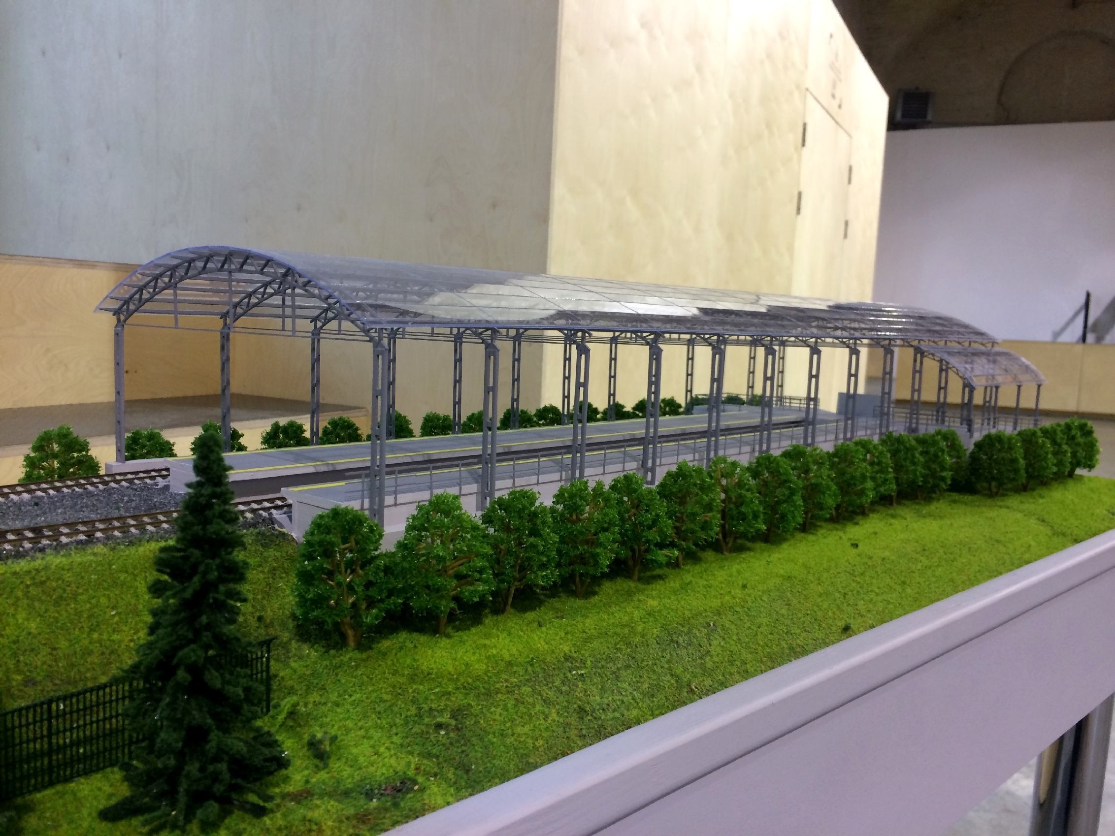 Этот макет изготавливали мы. Производство не афишировалось по ряду причин. Вкратце: время изготовления три с половиной недели, макет Г-образный модульного типа, ширина модулей 50см, длина боковой части 200см, длина основной части 700см, управление - полная автоматика, движение челночного типа с поочередным принятием рельсового автобуса на разные пути с остановкой выставляемой по времени. Для изготовления отдельных элементов привлекались подрядчики.