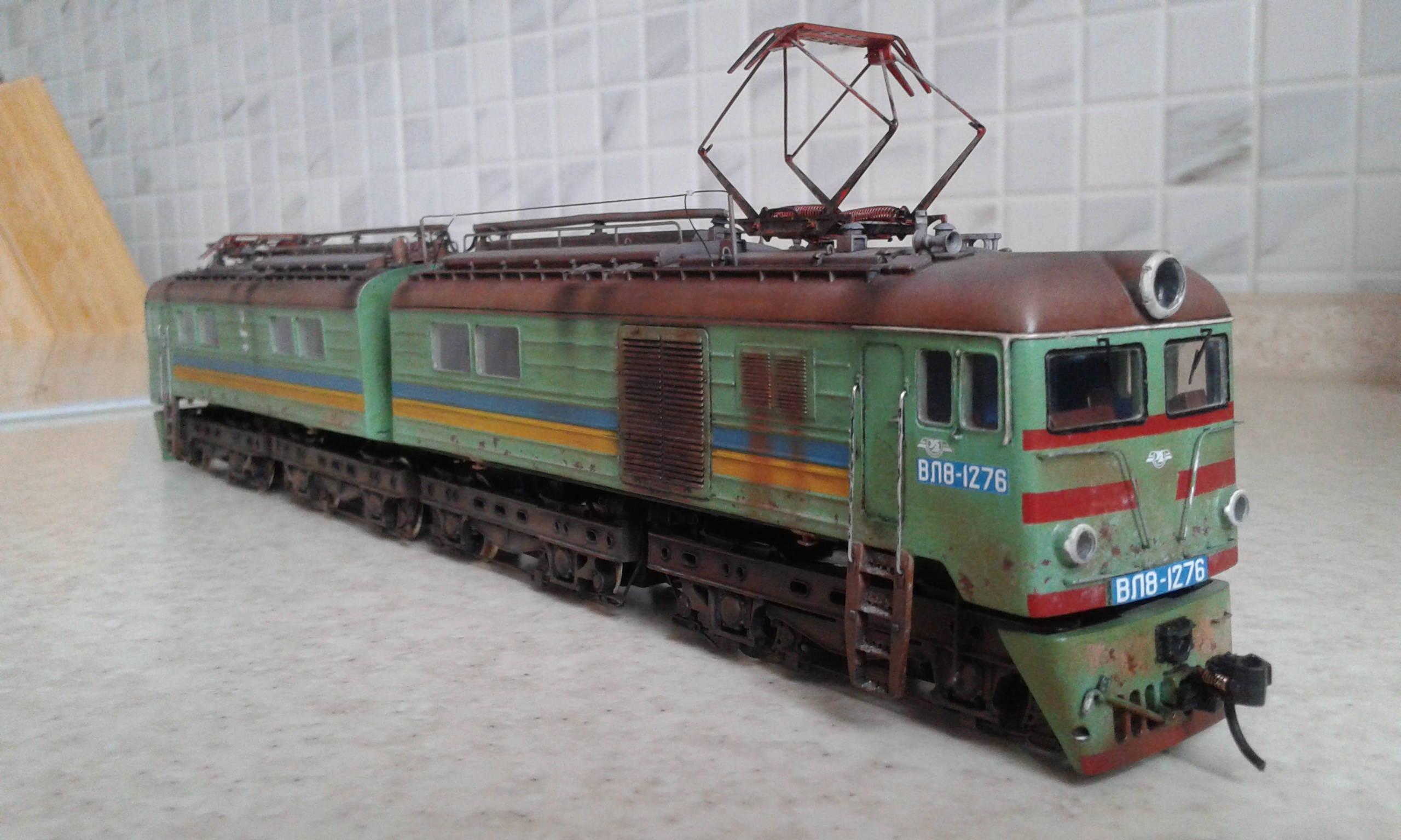 Всем привет! Сегодня закончил свой ВЛ8. Работать начал над ним в июле. Обмоторен двумя ходовками Роко е44. Но вот из-за того, что взял старые ходовки, которые были изрядно потрепаны, пришлось сделать одну ходовую секцию, собранную из запчастей этих двух. Второй кузов (так сказать правильнее, т.к. лок НЕ 2-секционный), не моторный. В итоге всё равно ходовые качества модели меня не устраивают... Больше никогда не буду брать старые ходовки. Следующую модель обмоторю новыми. Позже остановлюсь подробнее на некоторых этапах сборки ВЛ8: как состаривал, чем, скину фото процессов.