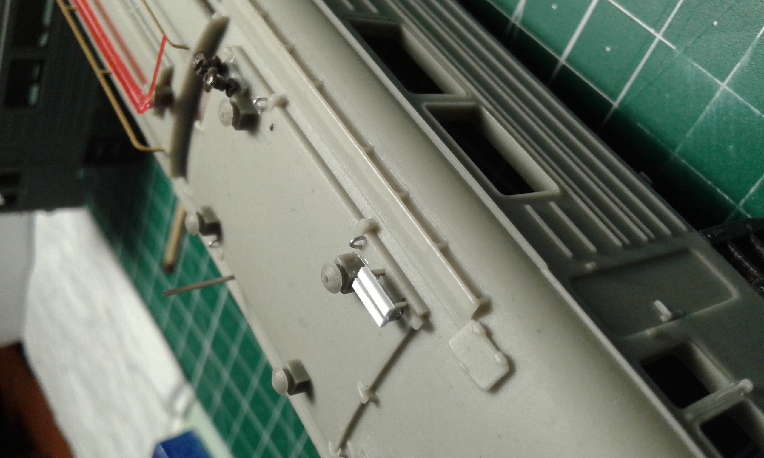 Затем начал дополнять крышевое в районе межкузовного перехода, опираясь на фото. В тот момент пришло вдохновение, и я нарезал из проволоки 0.4 мм имитации болтов))))