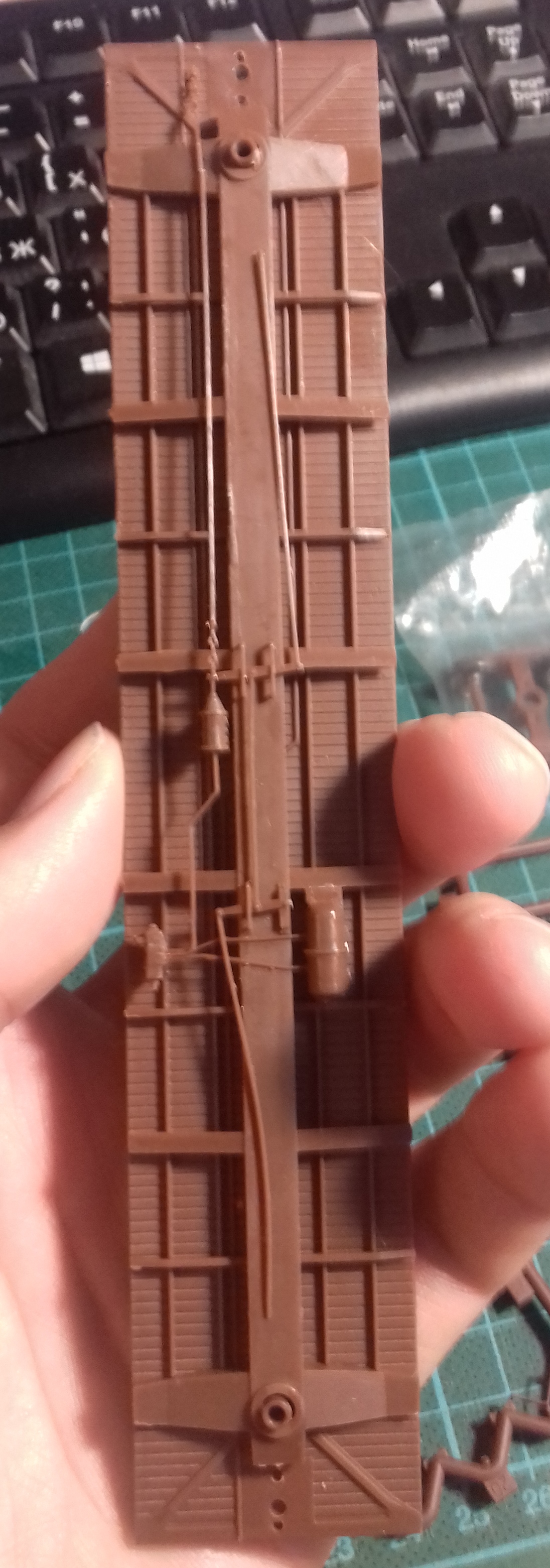 2. Цвет пластика. Грунтанул, задул в коричневый цвет. А сверху прошелся сильно разбавленной черной краской, хотел добиться эффекта старения.